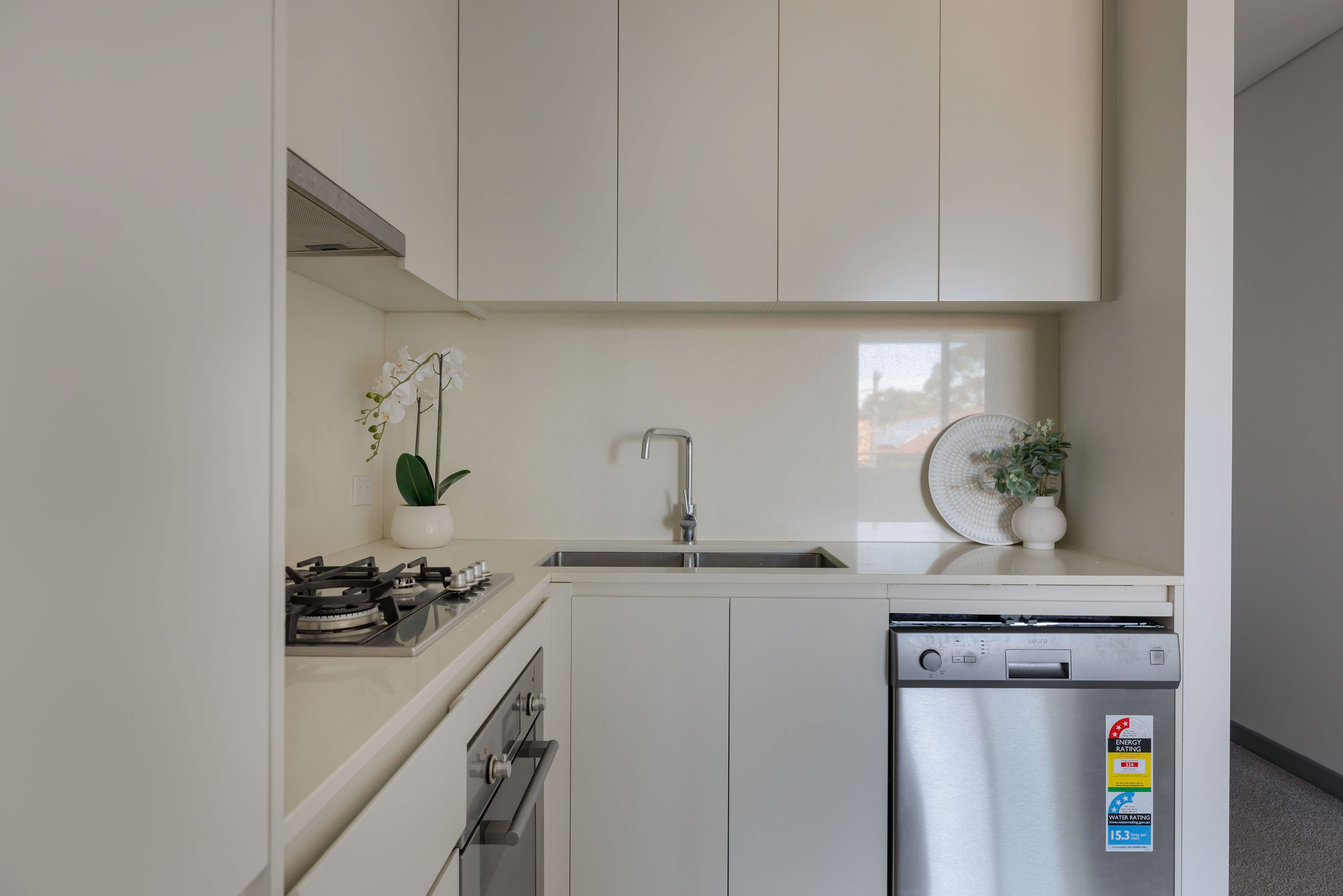 - Ilve kitchen with gas cook top, d/washer