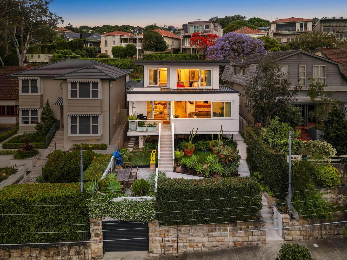 Nestled away from the buzz of Queen Street village atop a deep driveway, this remarkable home is a masterwork of design and craftsmanship. Built in 1968 for Clyde Packer by renowned architect Guilford Bell, it’s set in a coveted location, on the same stretch as the former home of Dame Joan Sutherland. On a generous 525sqm block, privacy is ensured by a towering perimeter of mature trees and hedges, with seamless flow between indoor and outdoor living spaces. The exteriors exude the charm of a Mediterranean villa, with a Travertine alfresco courtyard and paved pool area adorned with citrus trees. It offers an unrivalled lifestyle with three car spaces and direct access to Queen Street village, esteemed schools, Centennial Parklands, and Bondi Junction's retail/transport hub, while Woollahra Public School is only 350m away.