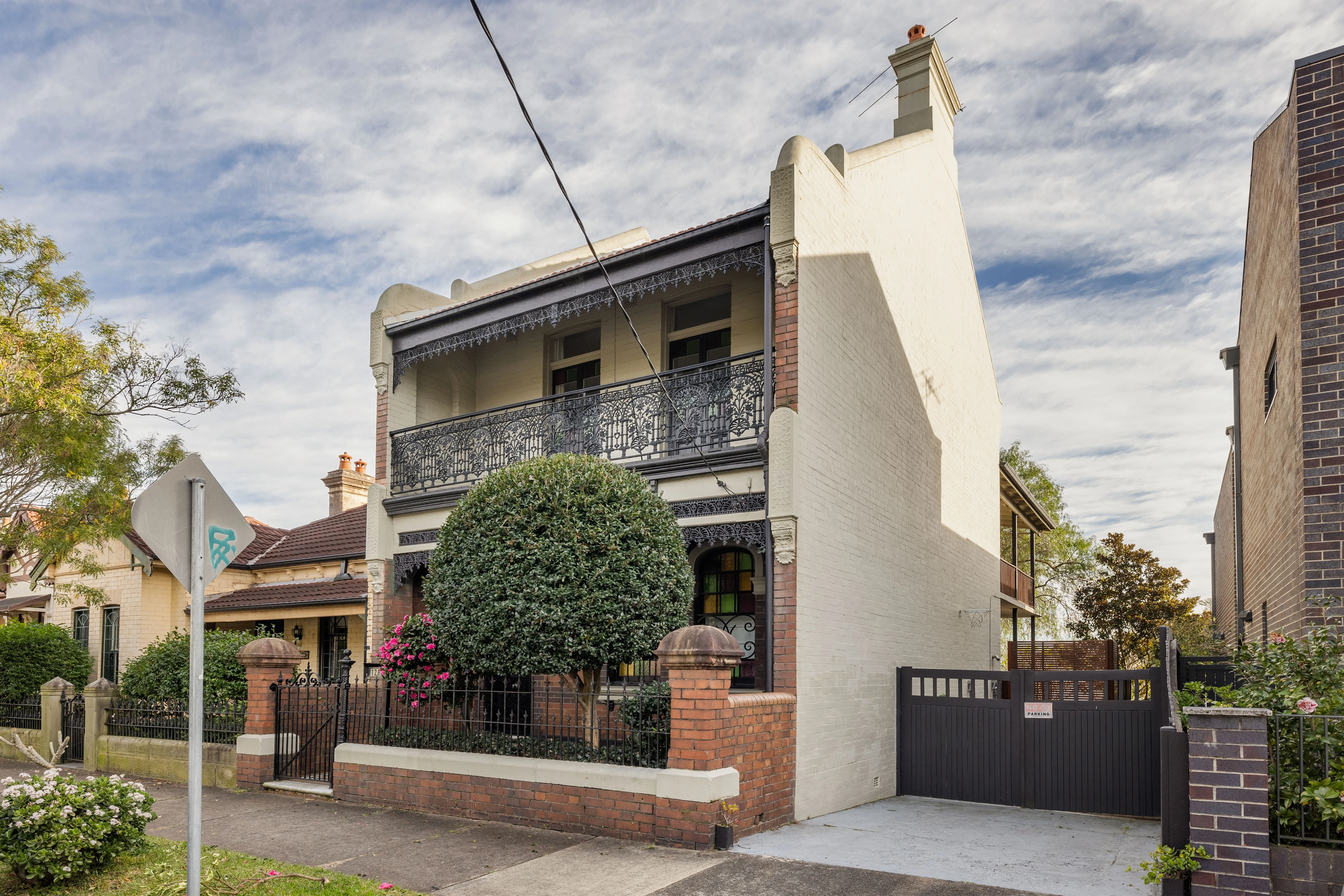 'Eryldene' stands out as one of the largest homes on the street, boasting a nearly 6-metre-wide terrace and a perfect north-facing orientation. This property seamlessly blends period features with modern updates, featuring extra-high ceilings and a gourmet kitchen. Adding to its versatility and unique character is a separate studio apartment located at the rear of the garden.