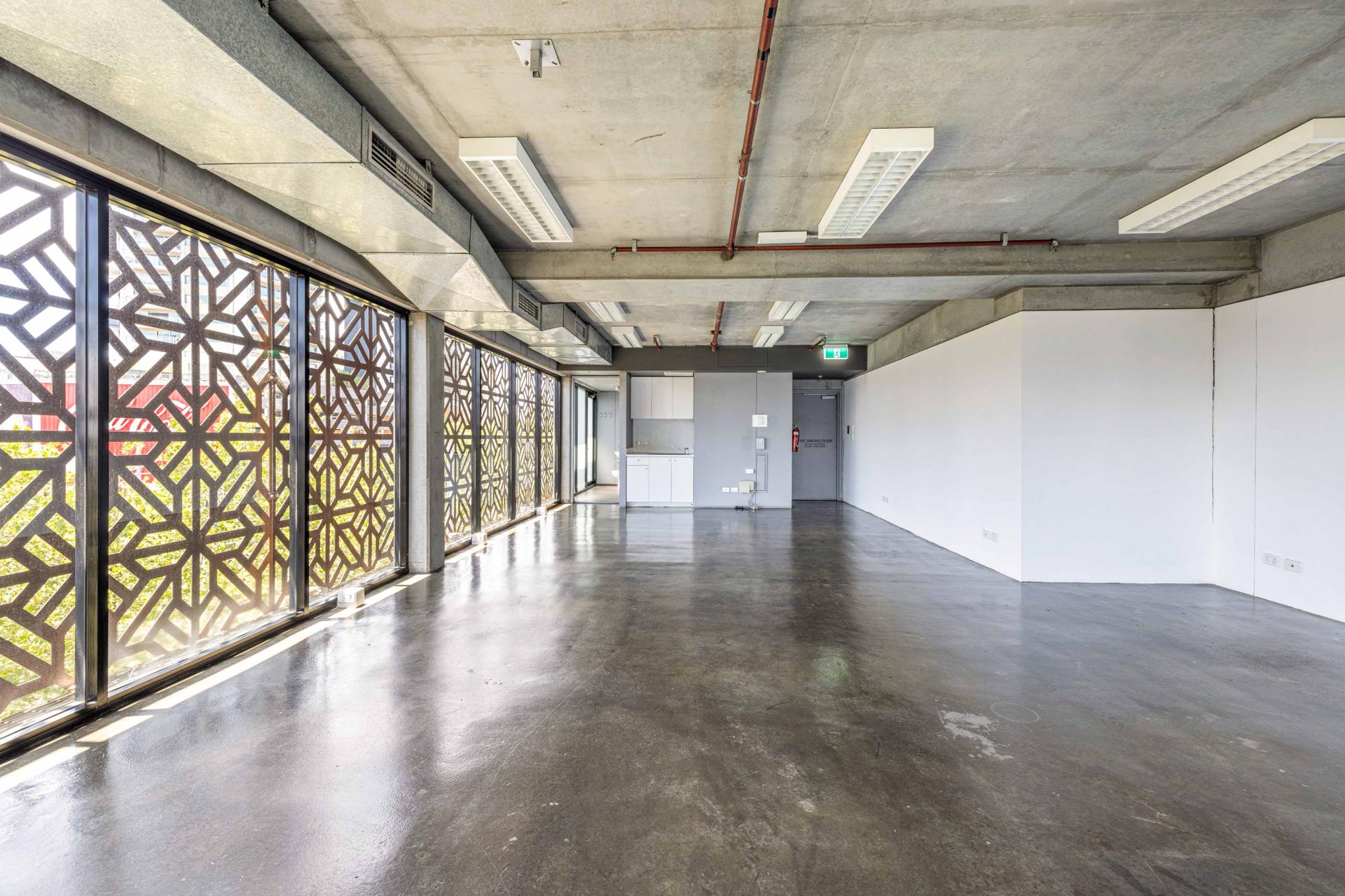 - Concrete floors & modern industrial feel