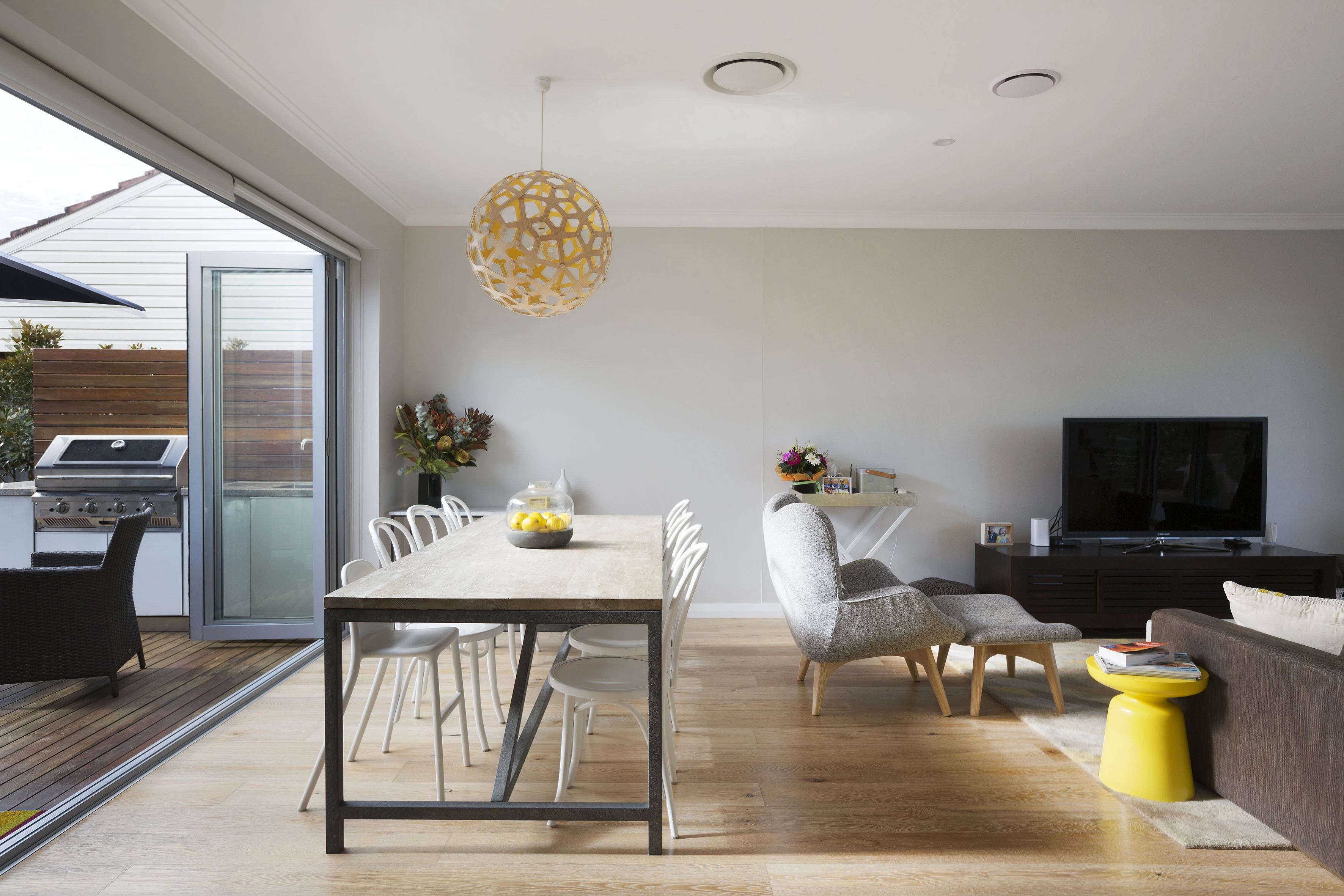 - Sun drenched open living space w/ bifolds