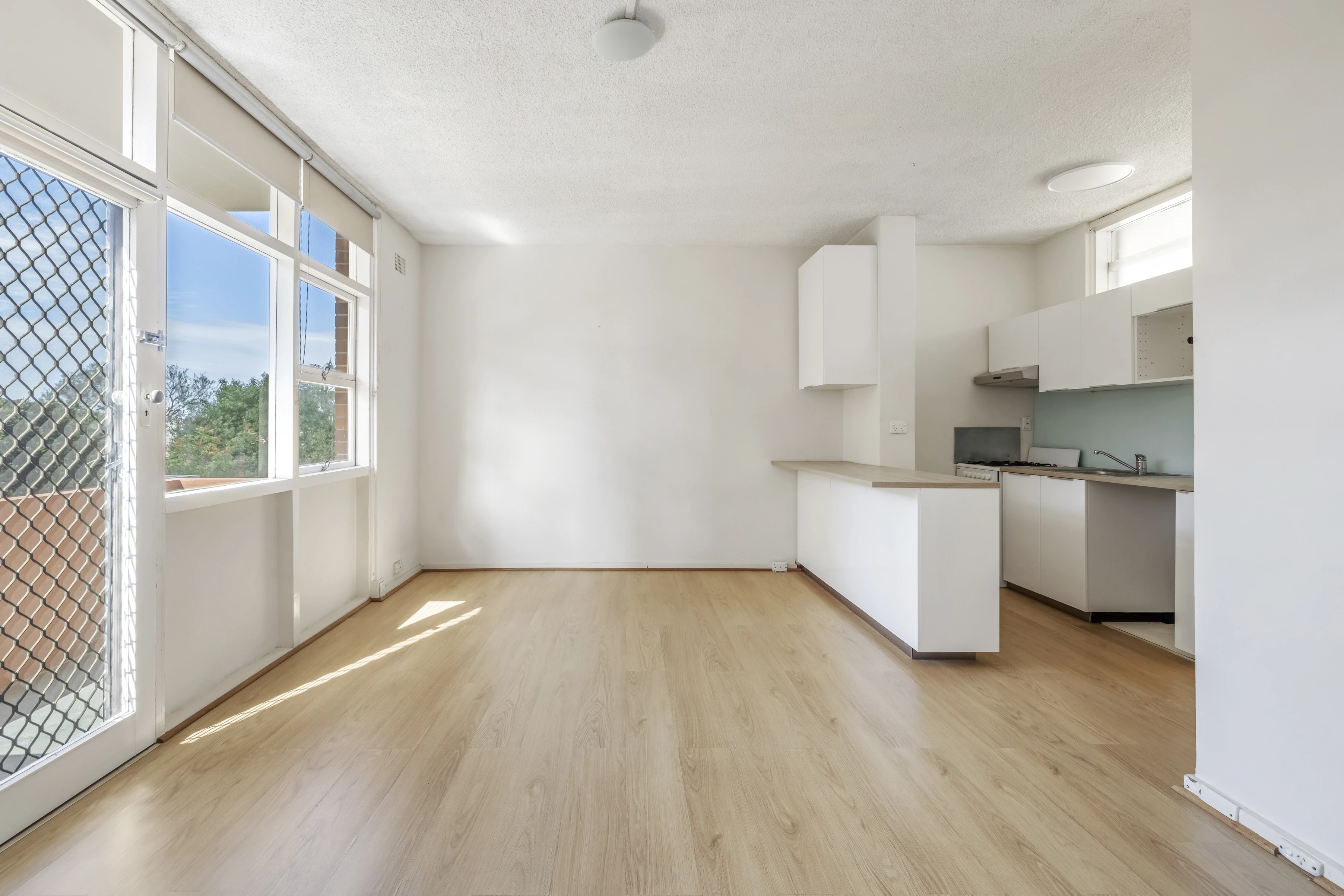 - Well-lit living zone with breakfast bar