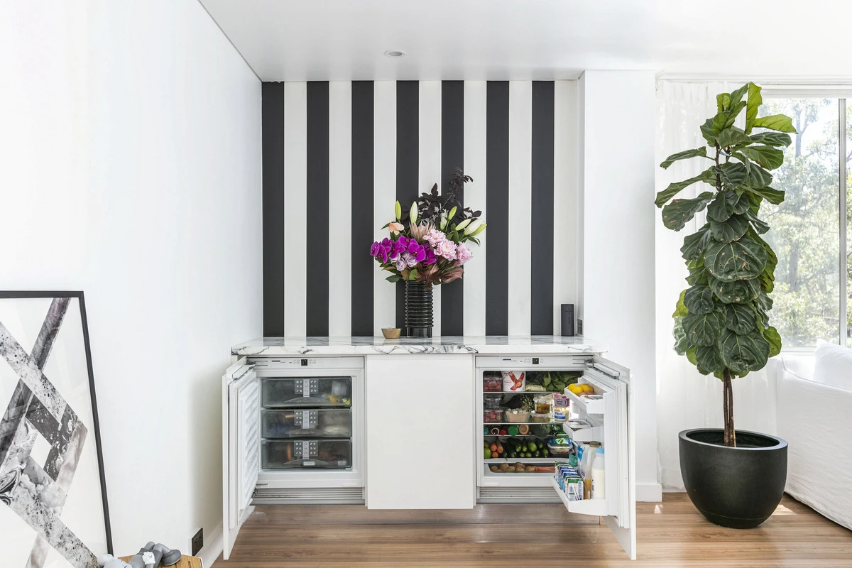- Calcutta marble, integ. fridge/freezer