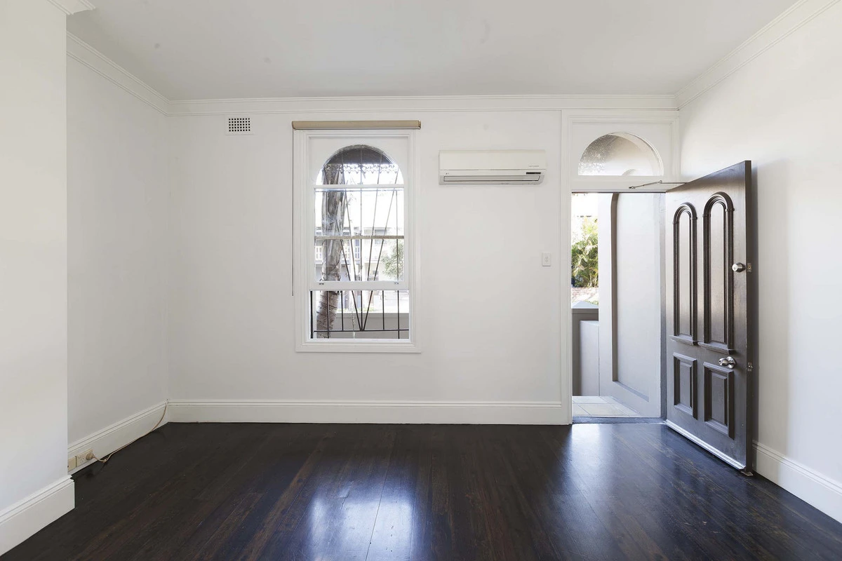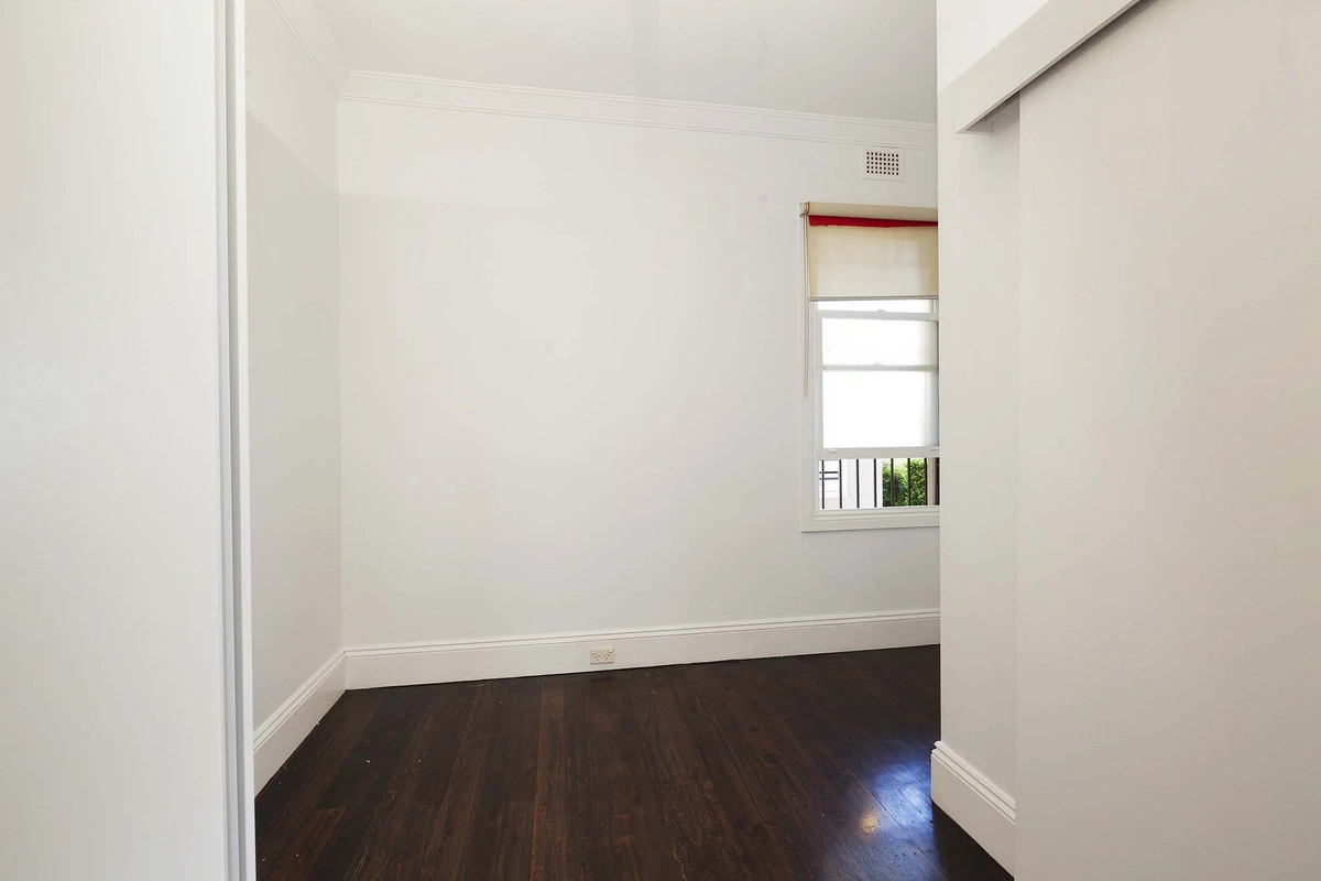 - Dark timber floor boards throughout
