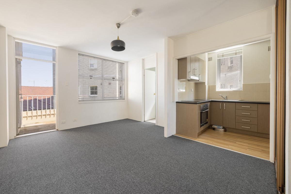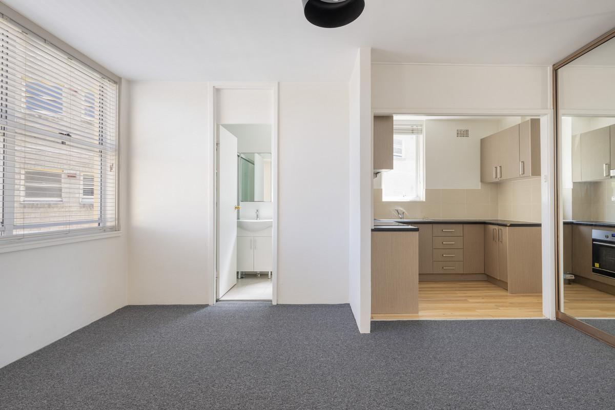 An immaculate updated studio with leafy rooftop views, this apartment offers a superb Elizabeth Bay position, along with a top floor setting for plenty of natural light, privacy and harbour breezes. A walk-everywhere lifestyle on the edge of the city and water.