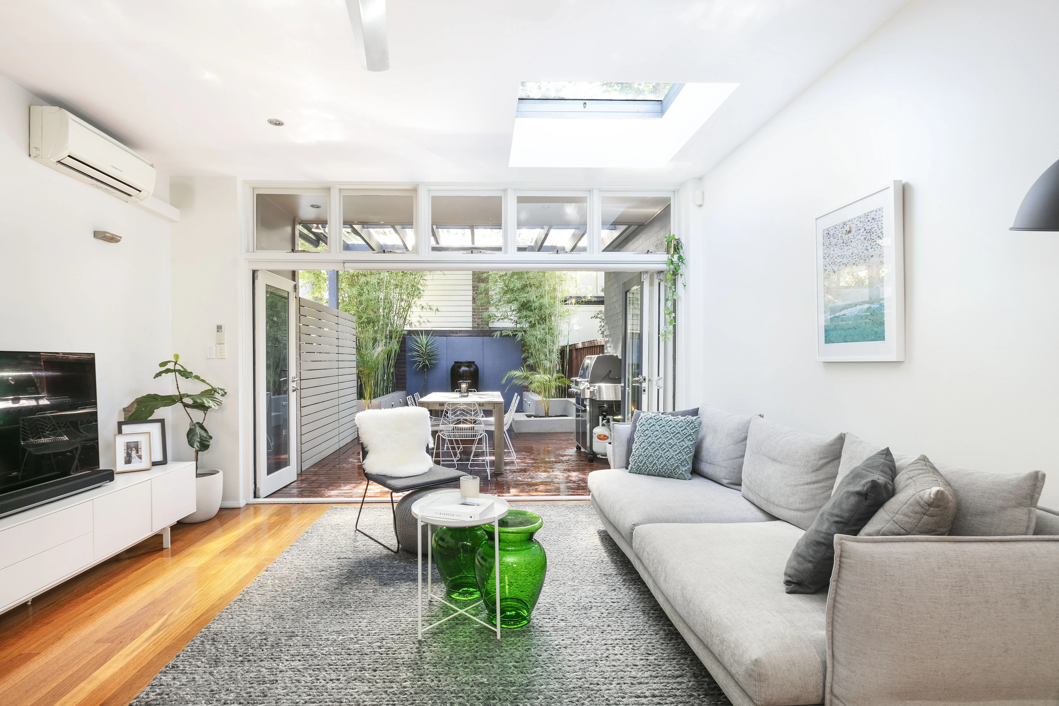 - Natural sun, skylit living, feature lighting