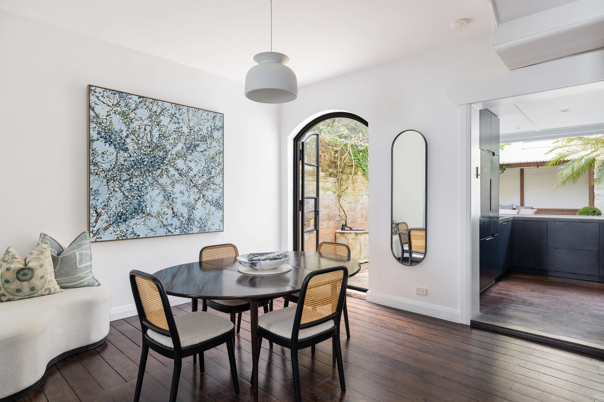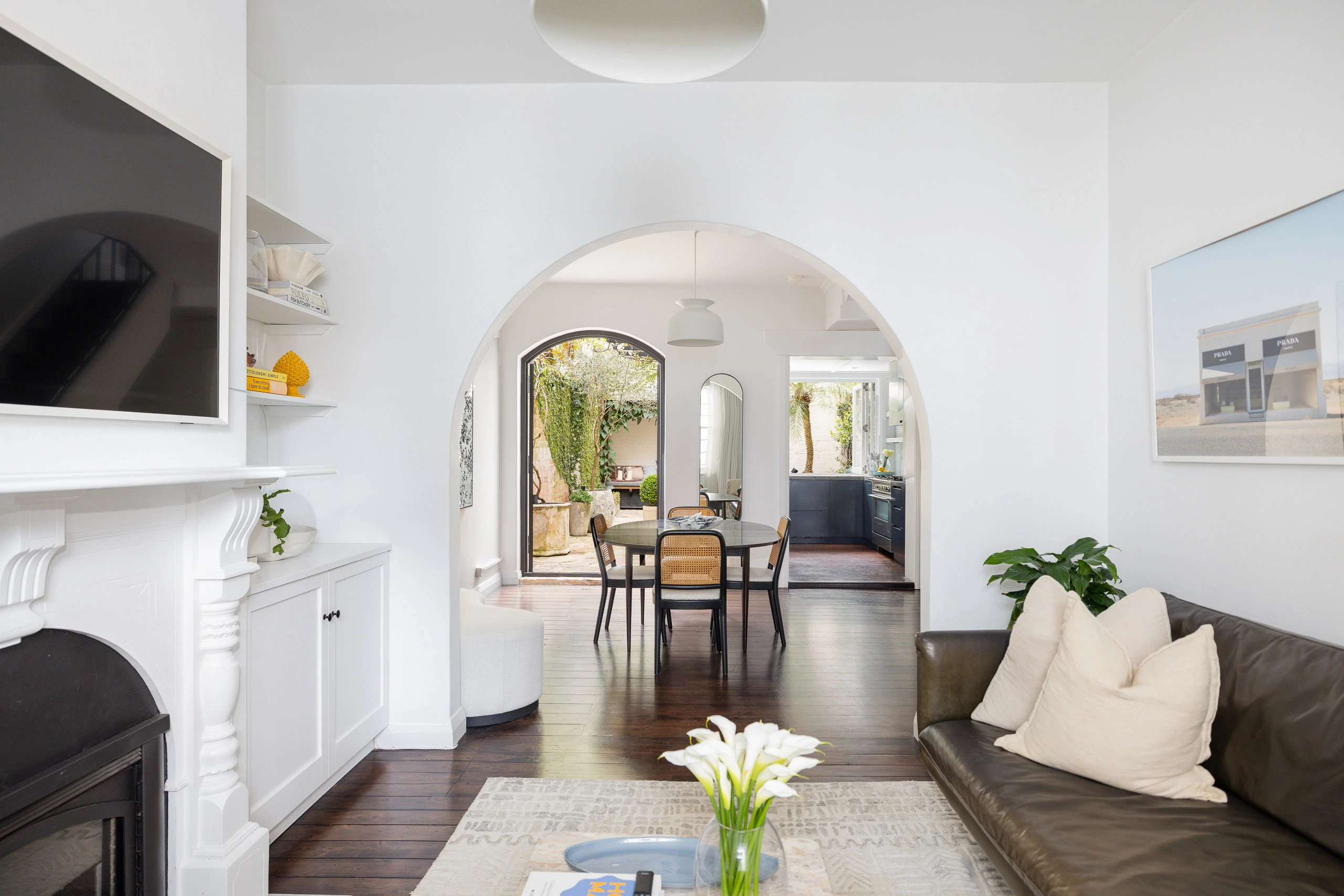 European aesthetics and high-end finishes define this wide 6m-fronted terrace, a home that embraces its perfect north-facing rear aspect on the fashionable side of Paddington, between Oxford Street’s cosmopolitan buzz and the open green spaces of Centennial Park. A sun-filled courtyard designed by Formed Gardens is central to the home, with its flagstone paving, vine-framed daybed, flowering jasmine and wisteria arbour creating a Mediterranean sanctuary for entertaining. The custom interiors by Jillian Dinkel Designs present a restrained palette of Bianco Carrara marble, walnut hardwood, and steel-framed French doors that bring light and greenery into the living spaces. A lined attic space offers storage with scope to convert into a third bedroom, while the desirable position puts you across from Oatley Reserve and close to arthouse cinemas, galleries, cafés and transport links.