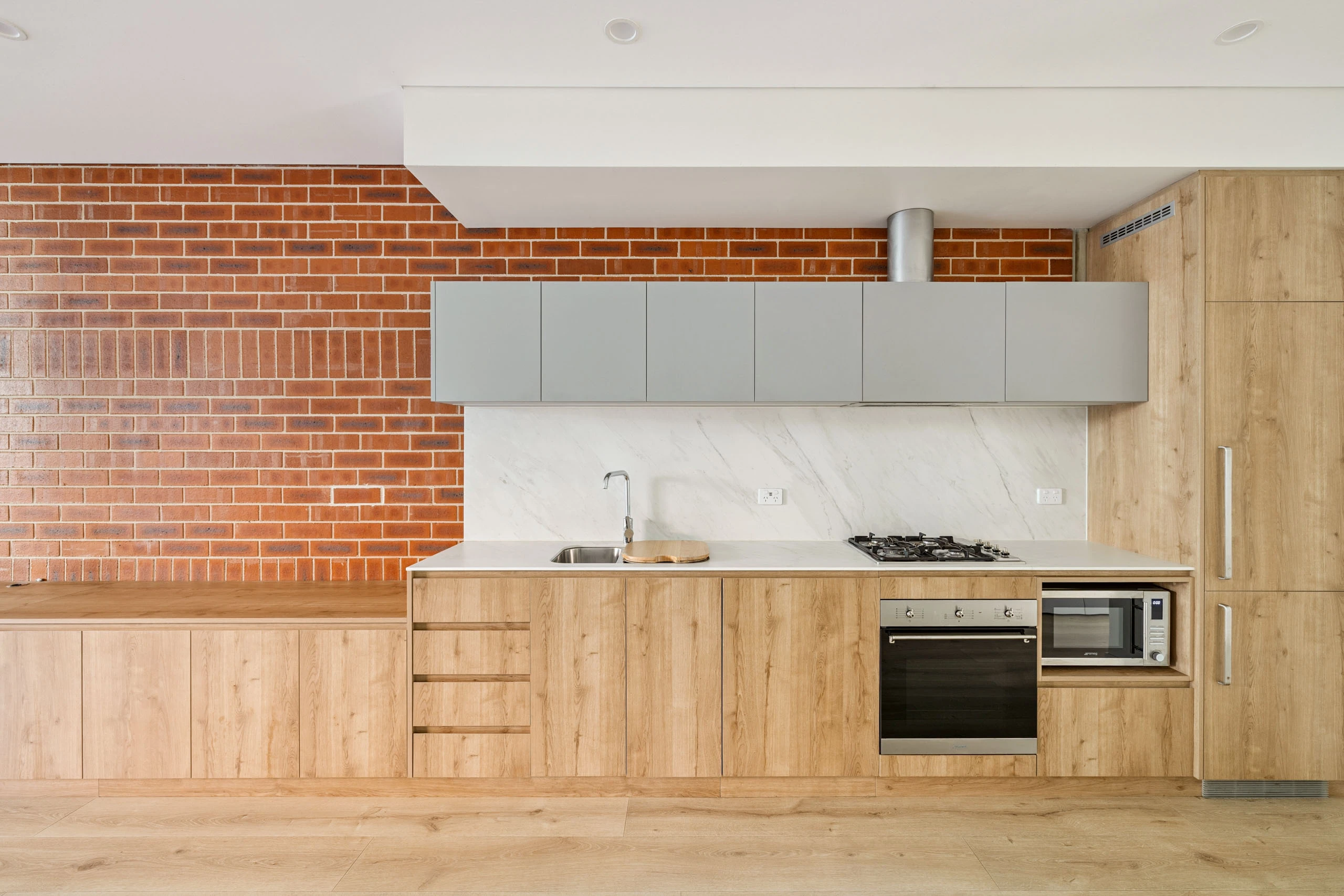 - Integrated dishwasher, fridge, microwave