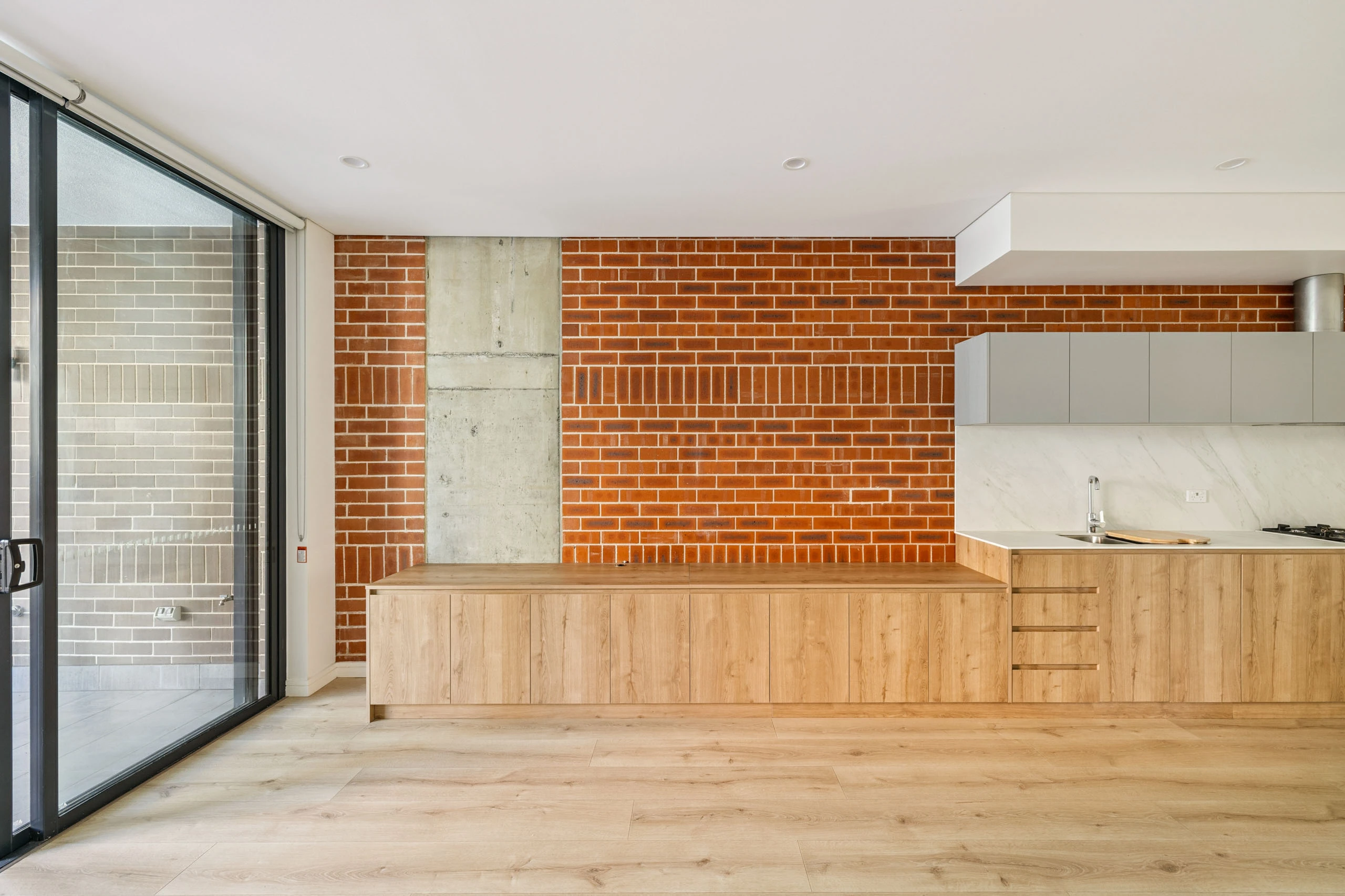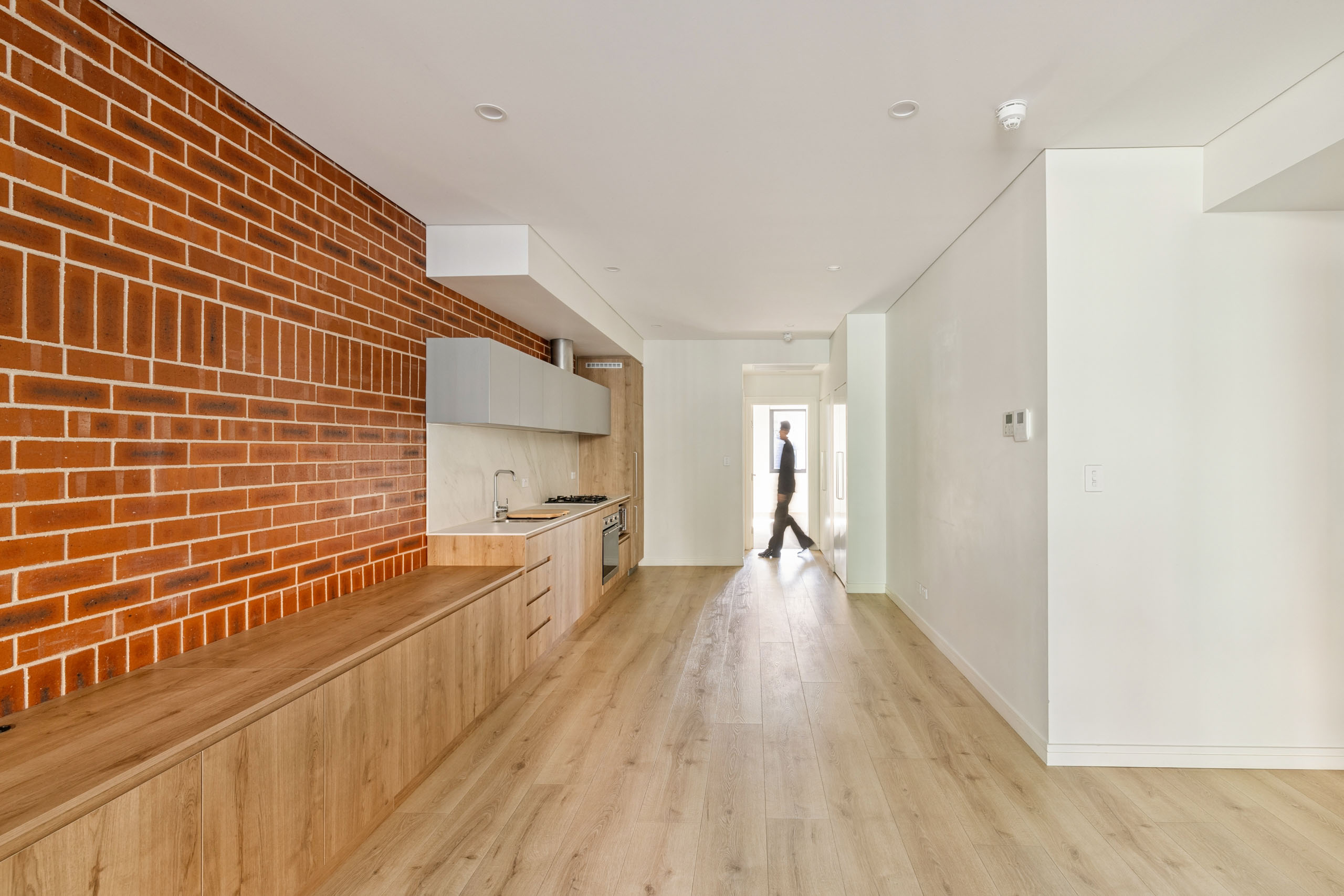 - Open-plan living with timber flooring