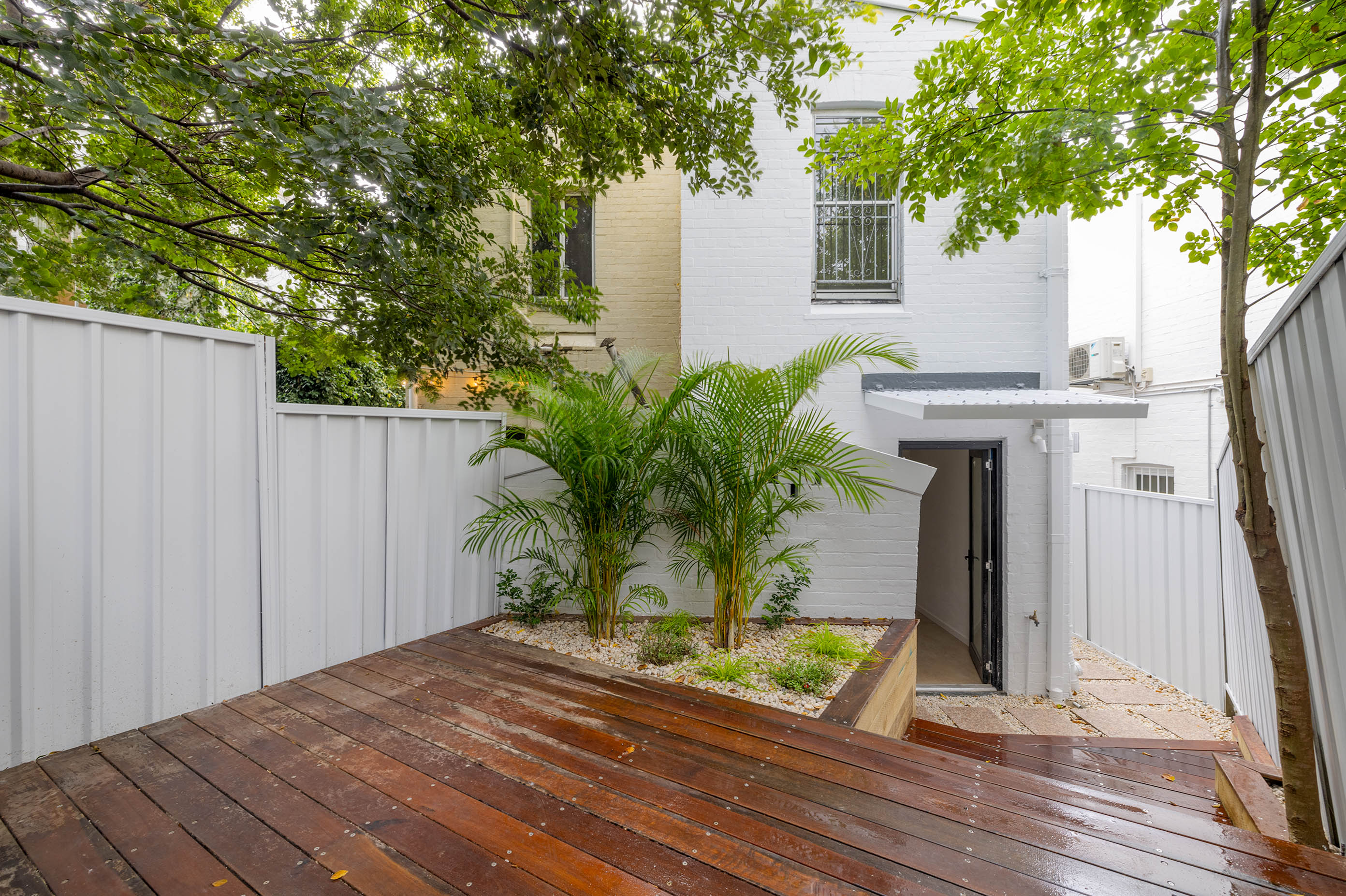 - Large timber-decked backyard scene