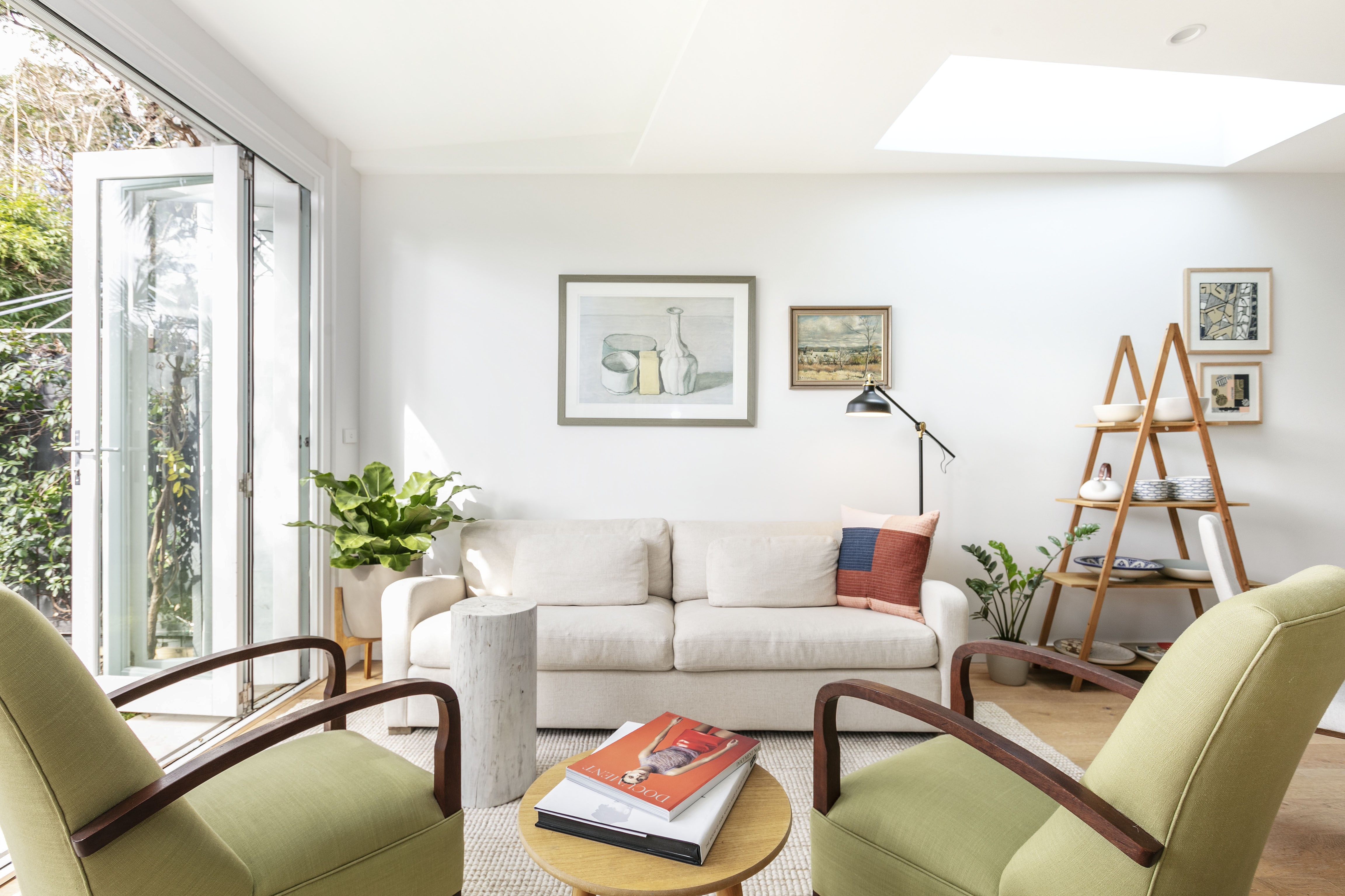 - Concertina doors to a green-fringed yard