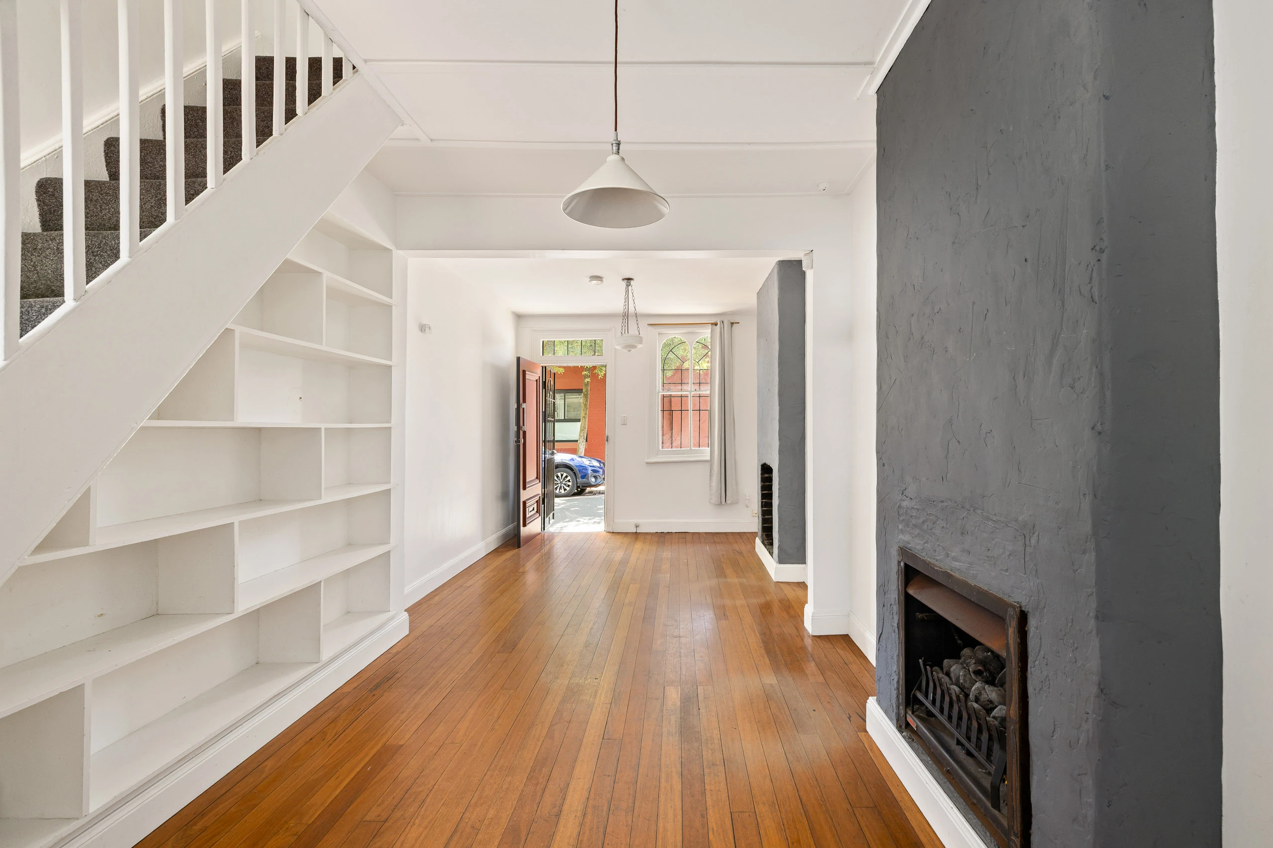 - Polished floorboards, carpet upstairs