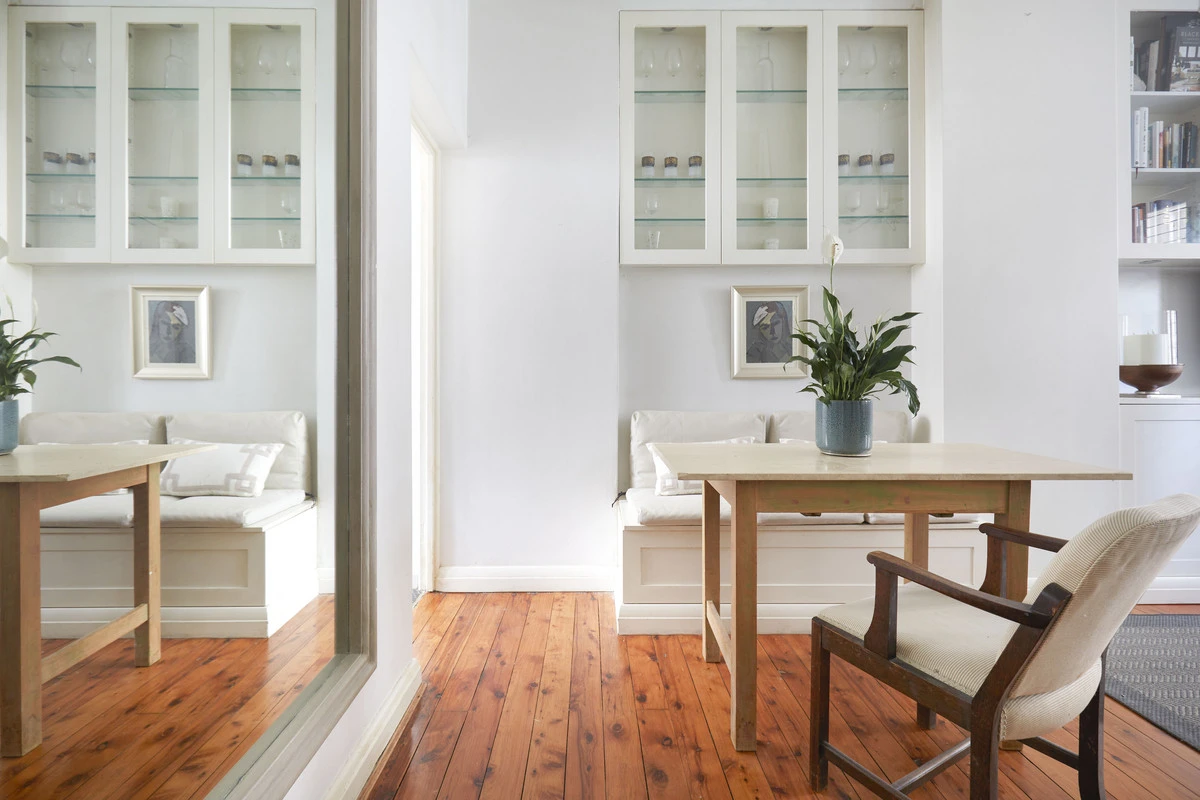 - Dining banquette & display cabinets