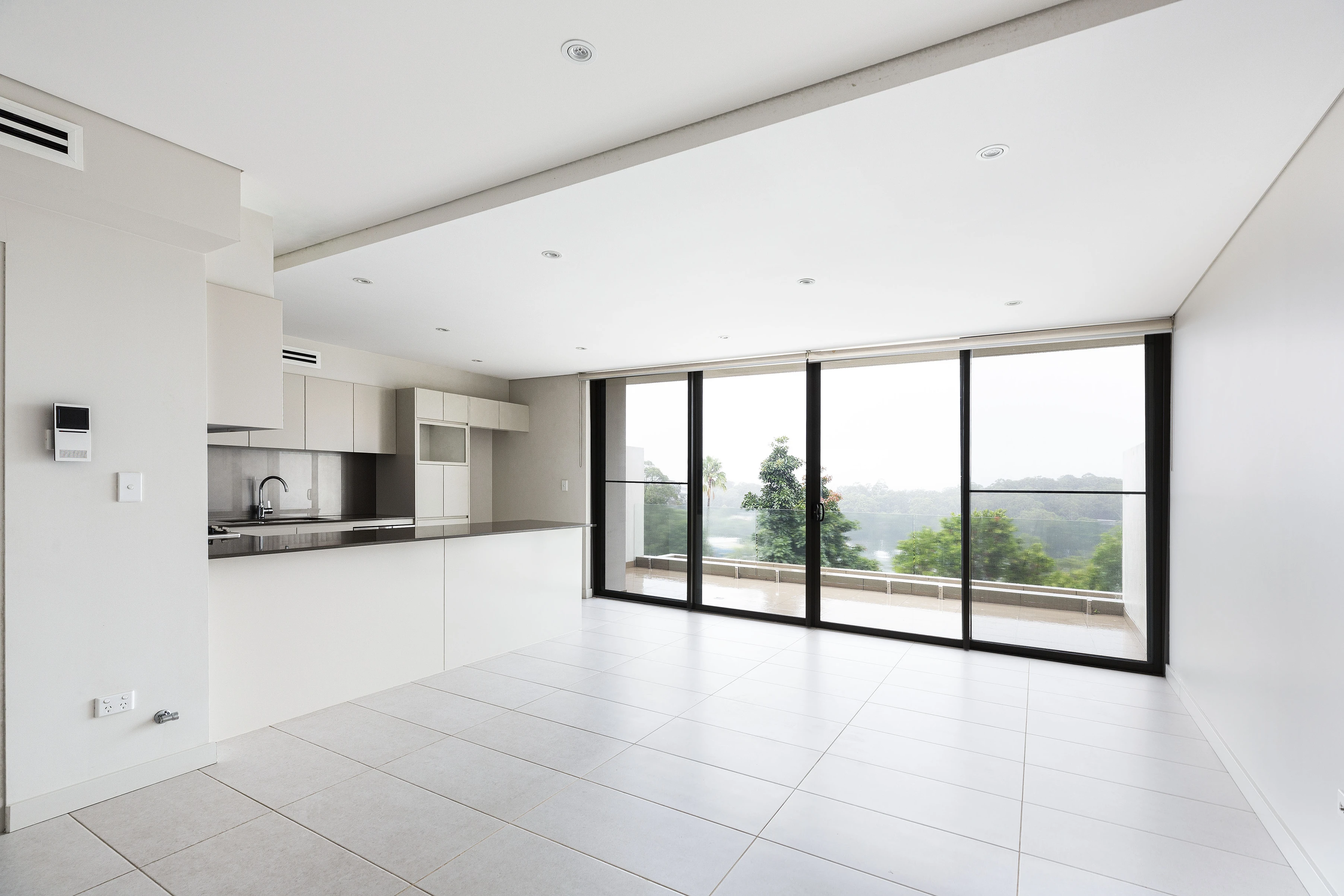 - Open living with full-width balcony