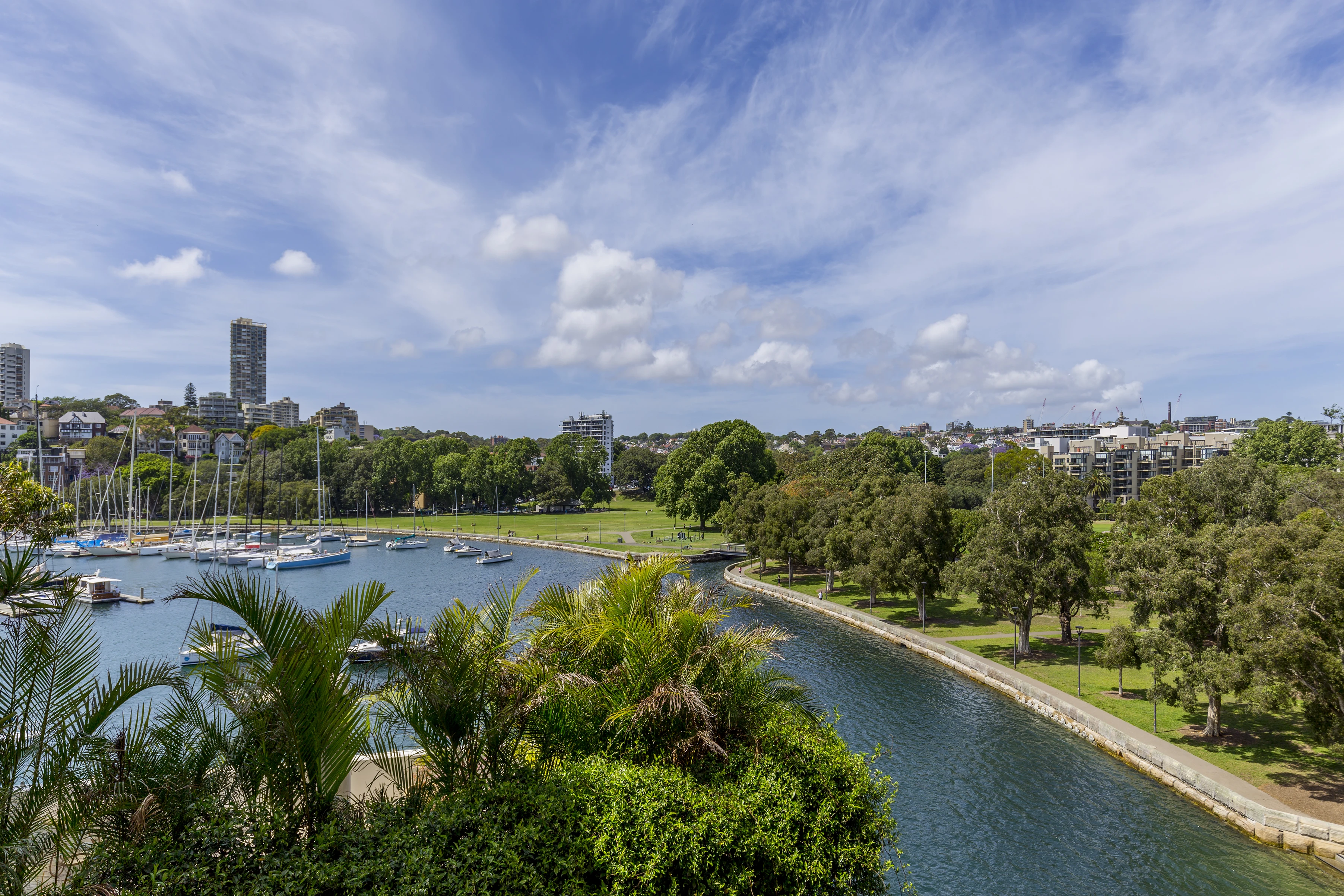 - Views of bay, marina, Rushcutters Bay Park