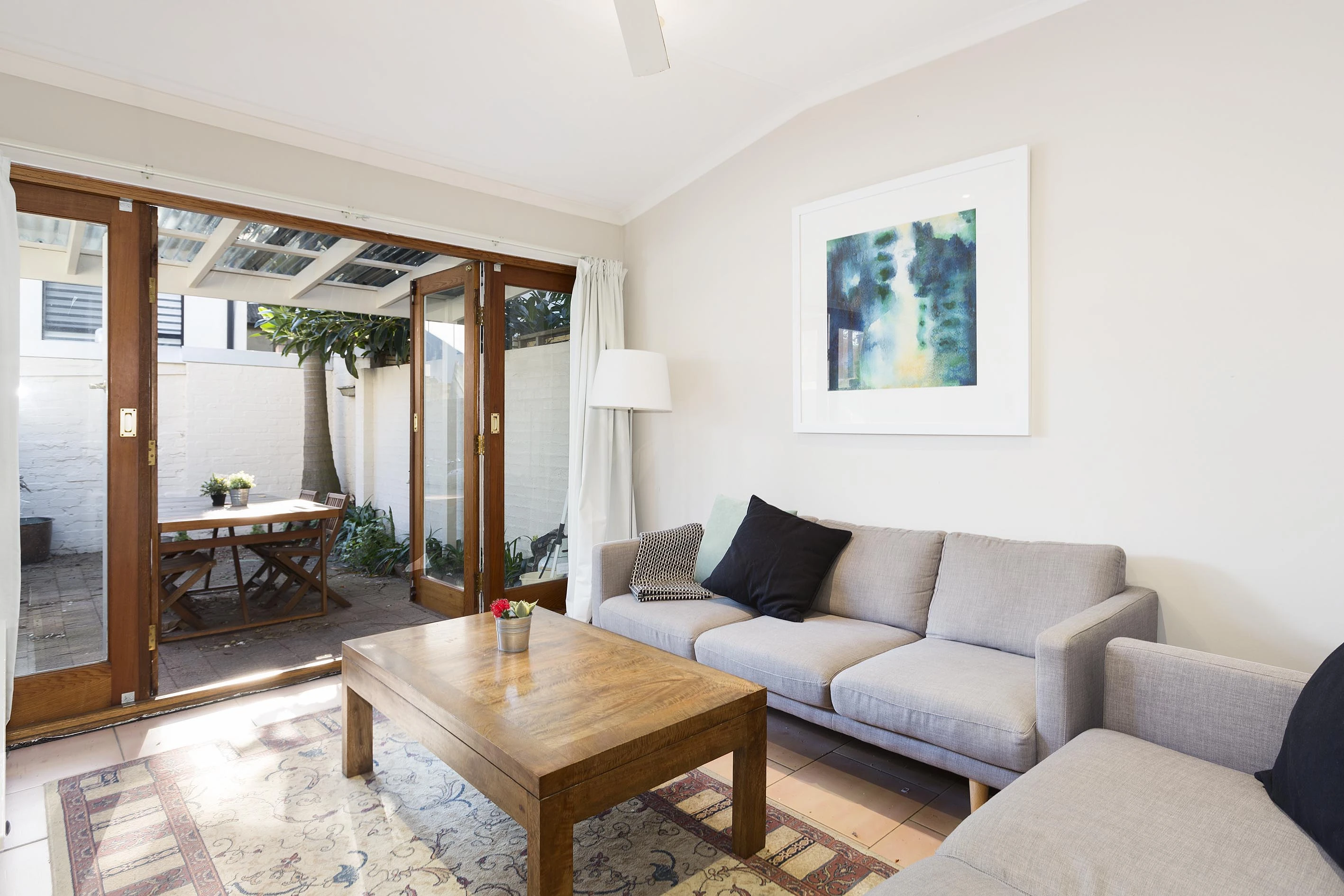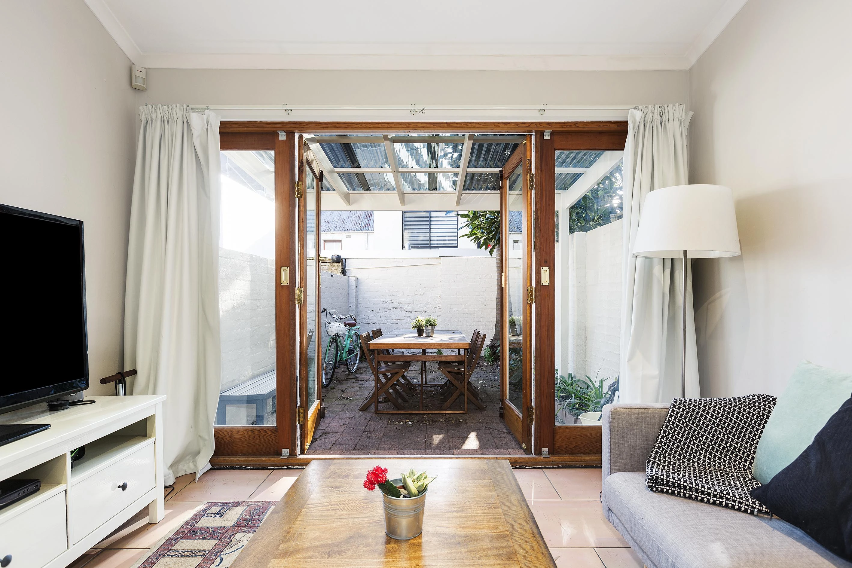 In a green street just off a pulsating cosmopolitan scene, this terrace house opens to a bright west-facing courtyard.