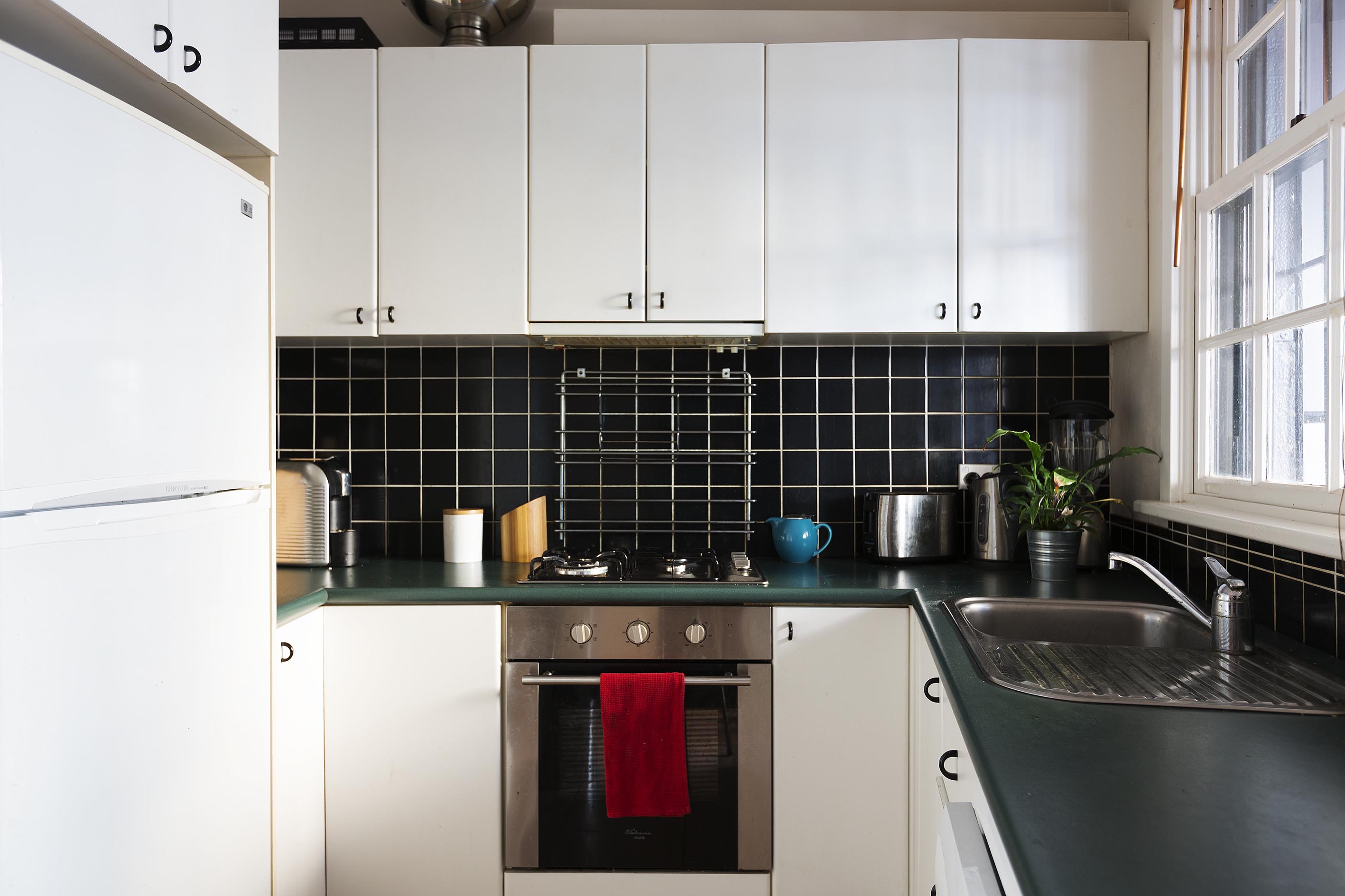 - U-shape gas kitchen, d/w, s/steel apps