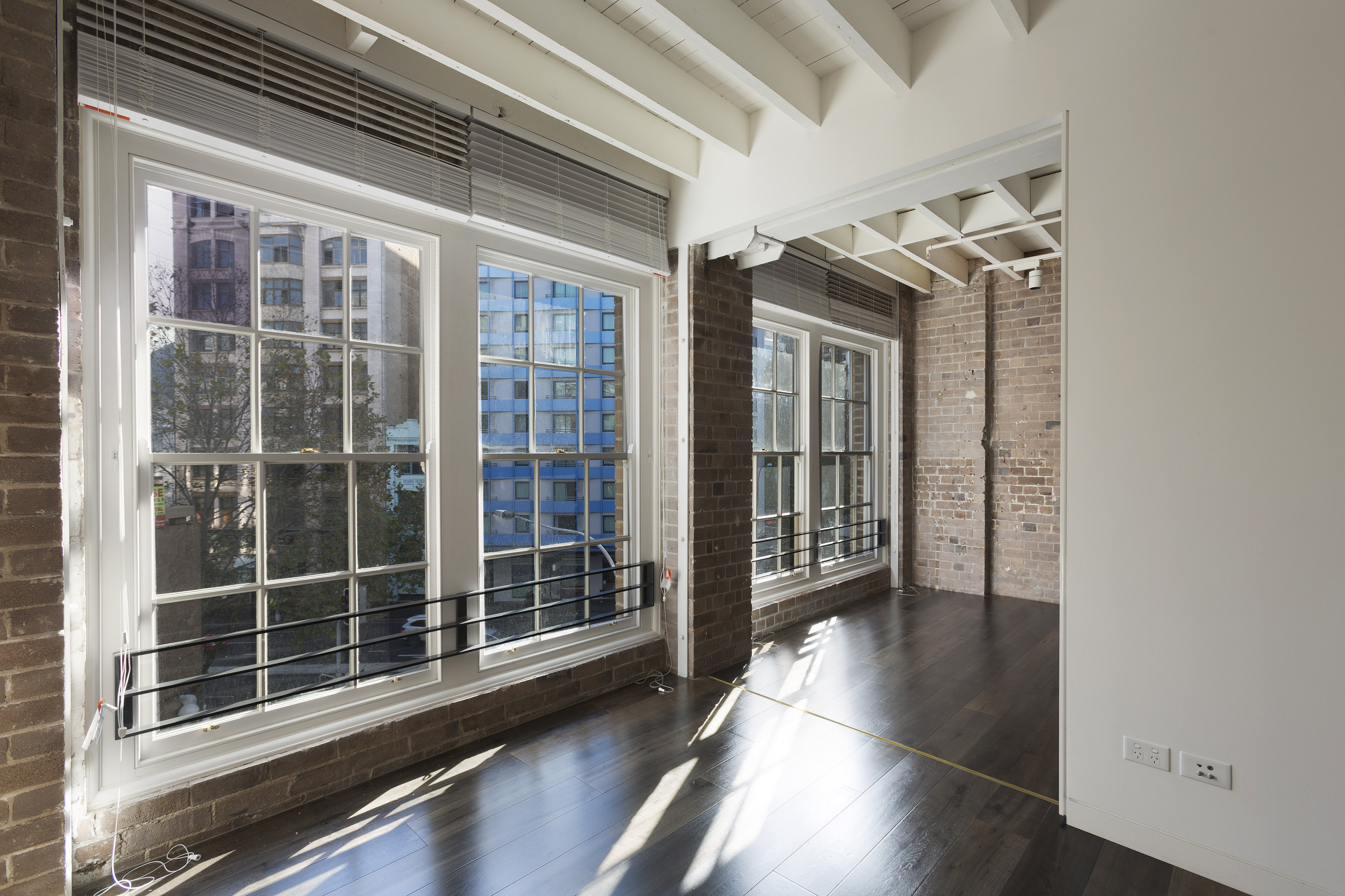 - High ceilings, brick + industrial features