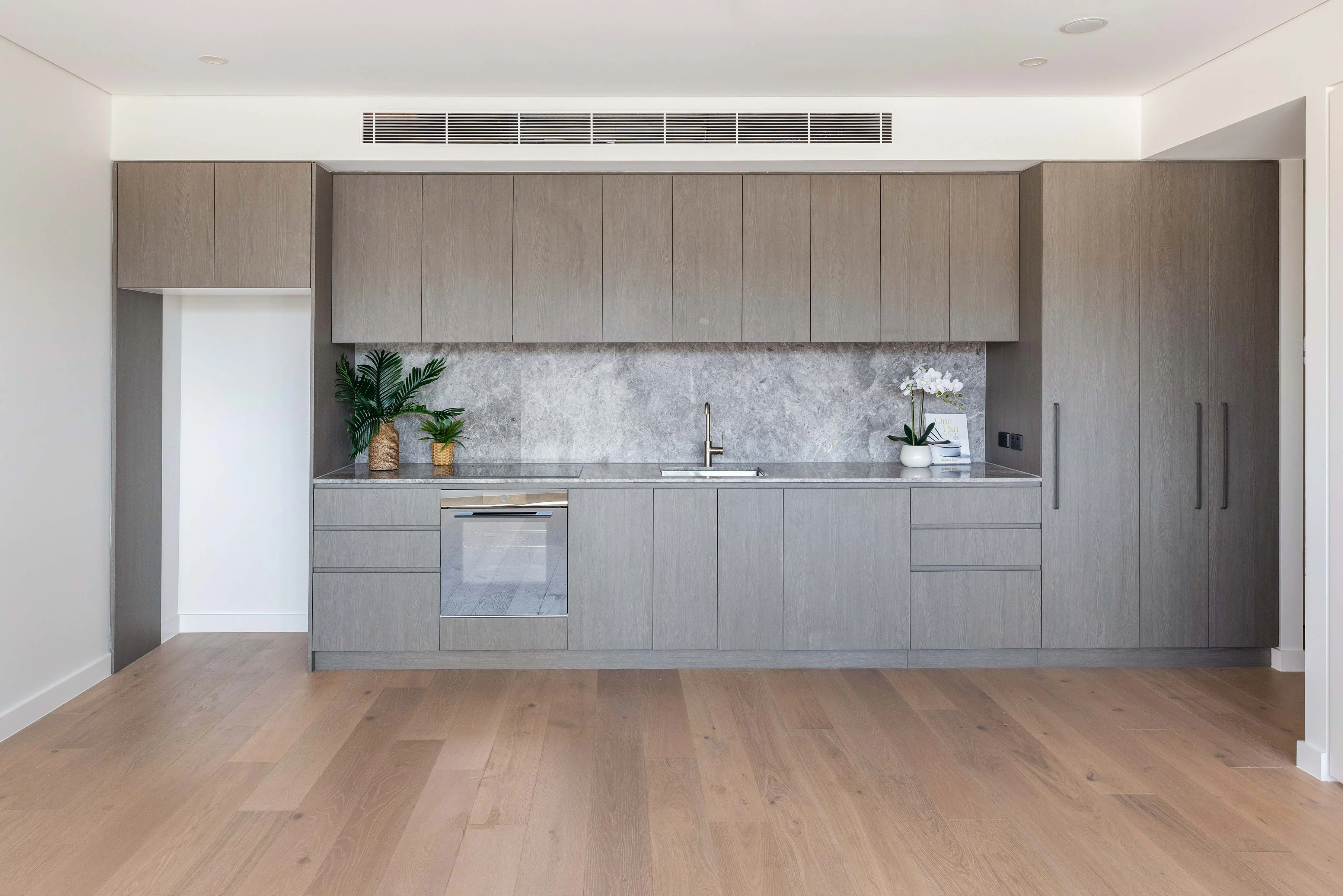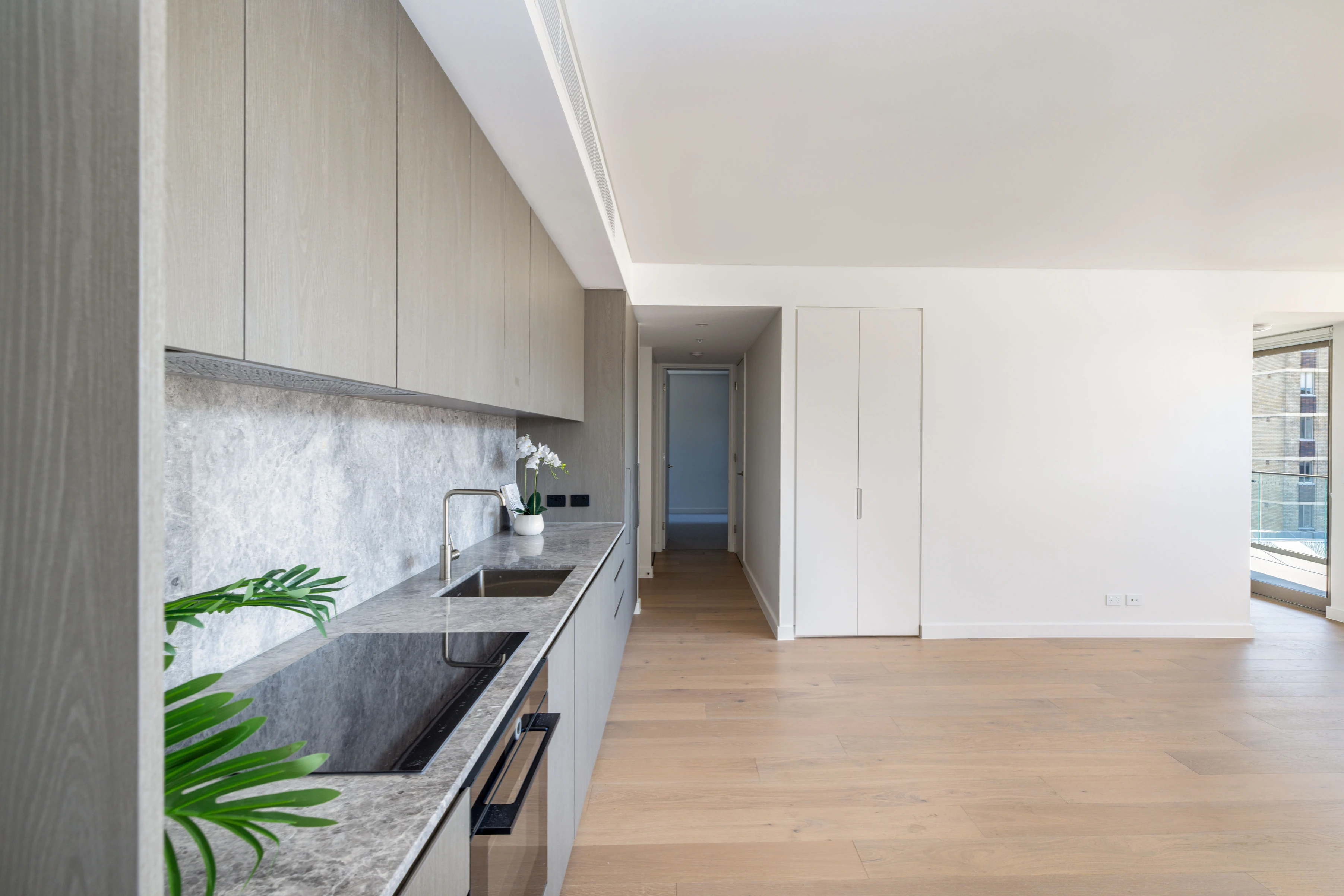 - Induction cooking, timber floorboards