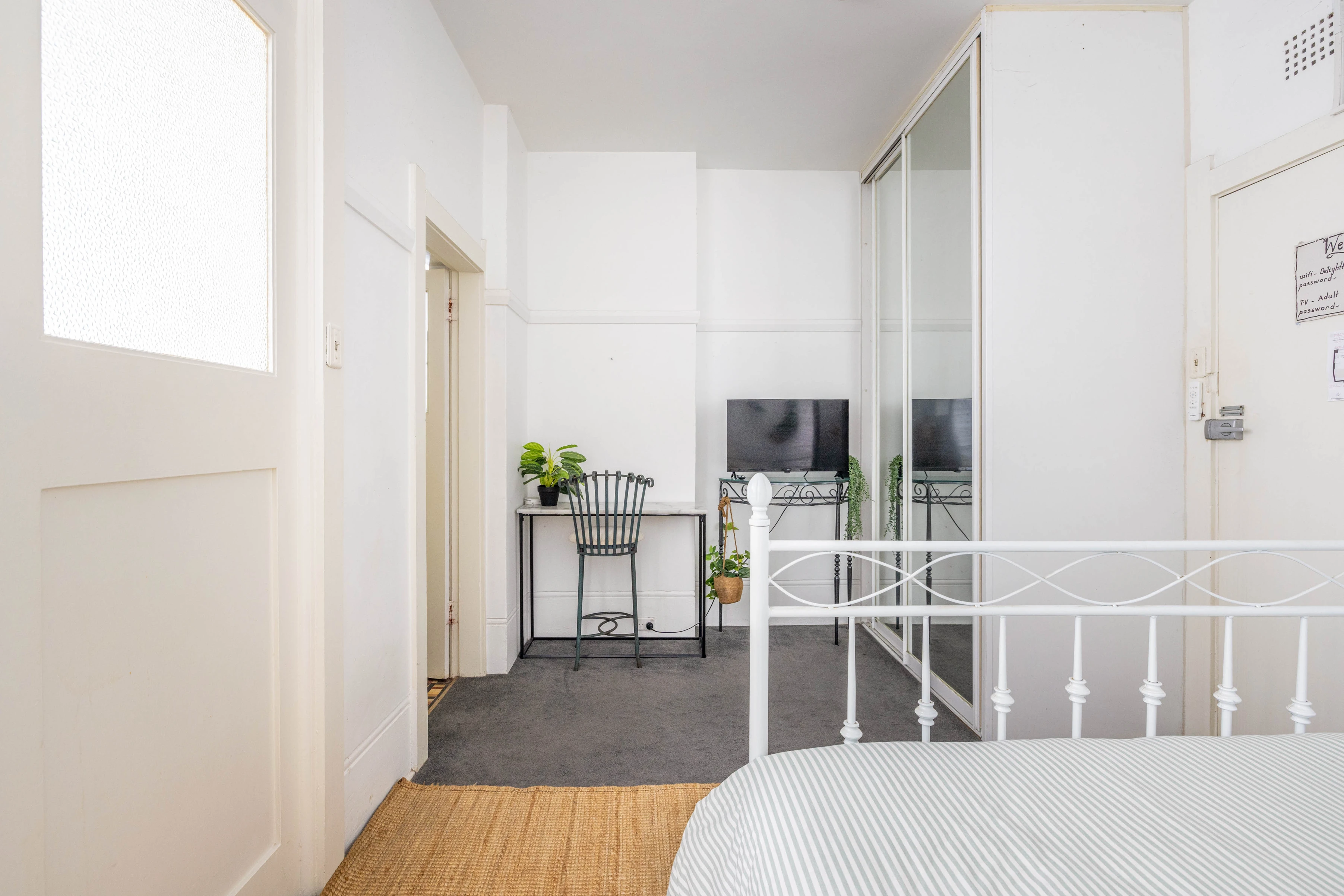 - High ceilings, picture rails, built-in robe