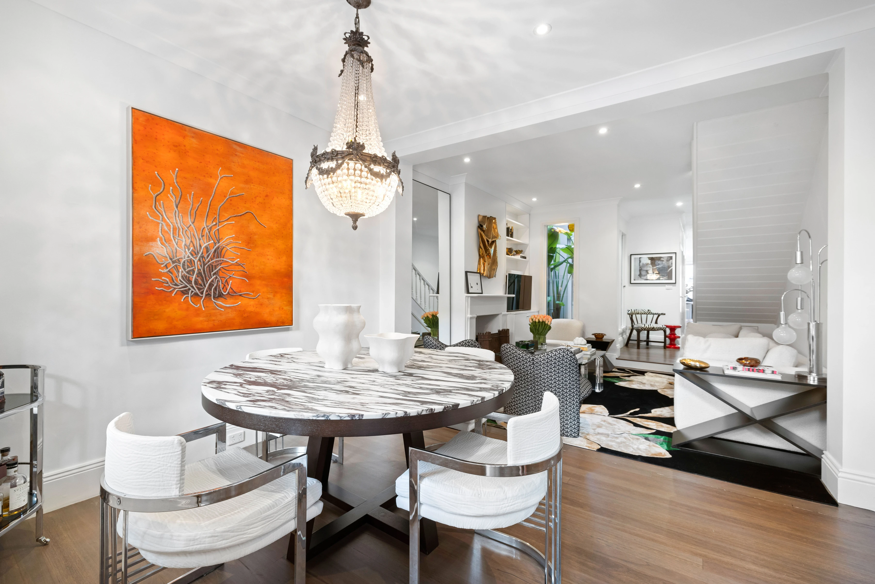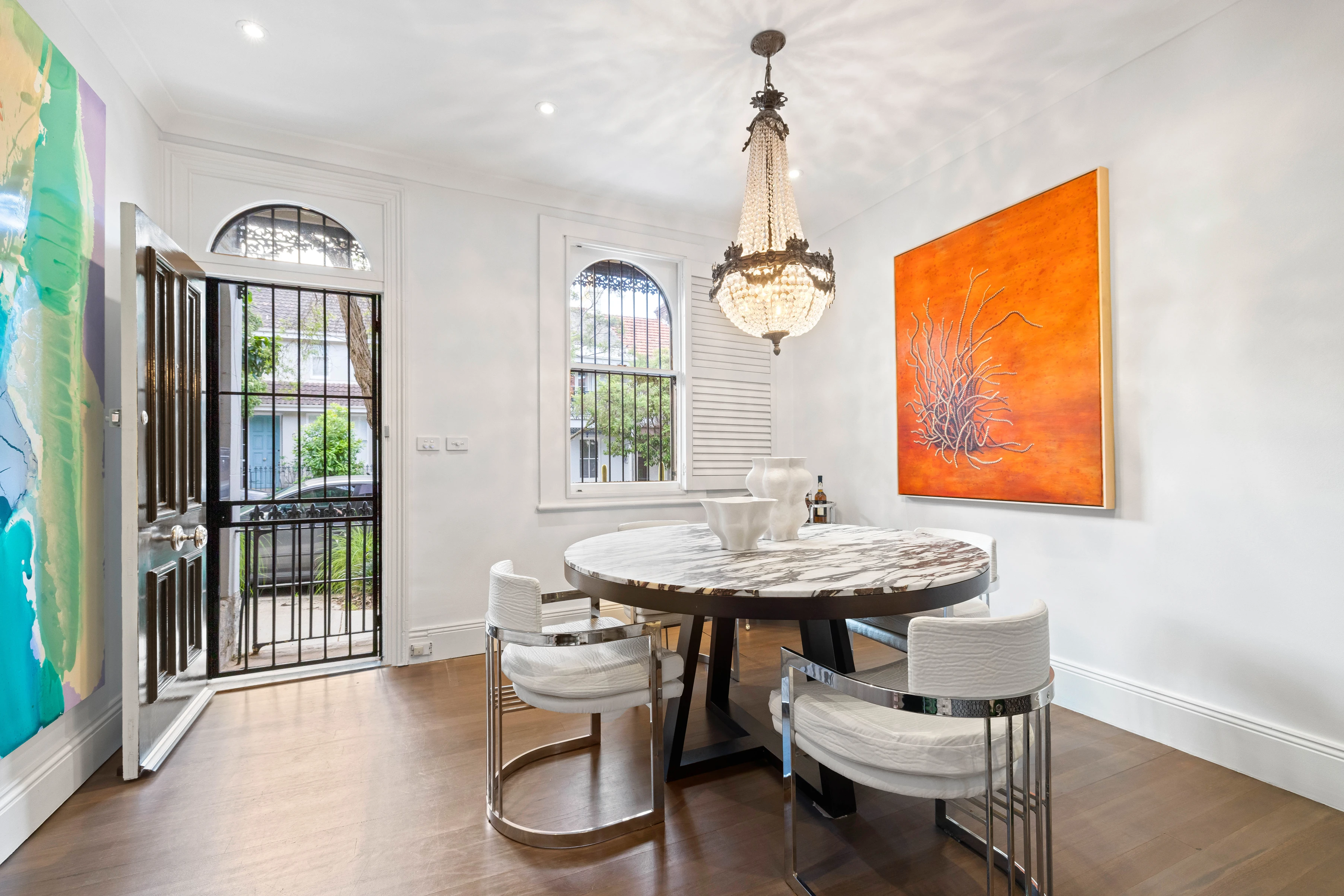 Elegant updates bring contemporary openness and clean white lines to this classic terrace. A charming ivy-clad courtyard with garage off Smith Street, which is only steps to Queen Street’s fashionable boutiques and grocers.