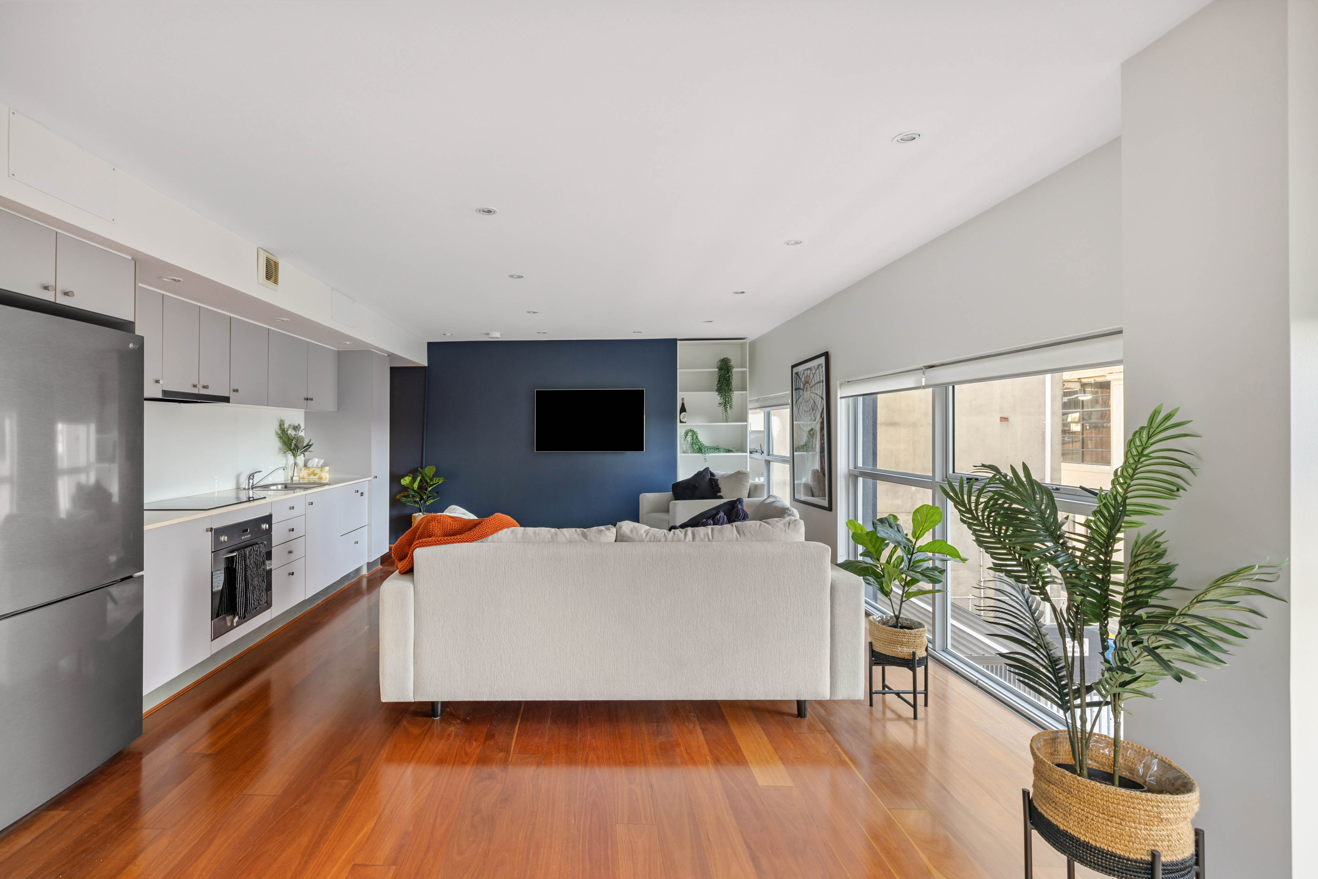 An elevated corner position and wraparound windows create an impressive urban escape in the heart of Darlinghurst’s dining precinct. The generous open-plan living space integrates a full kitchen, study nook and treetop views of the village life at your doorstep. The bedroom is very private and comes with plenty of built-in storage. In easy reach of local cafés, grocers and dining, St Vincent’s Hospital and transport links, or stroll to the CBD.
