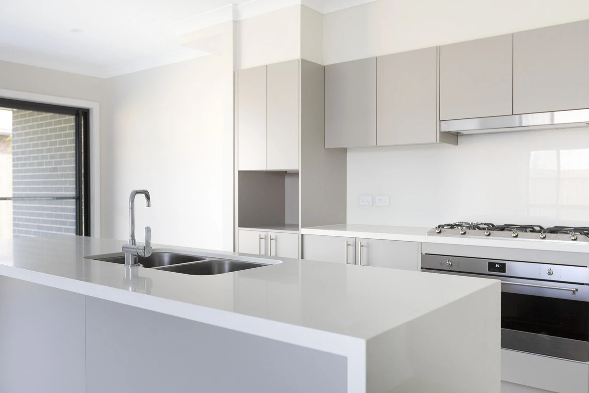 - Gas kitchen, island bench & d/washer