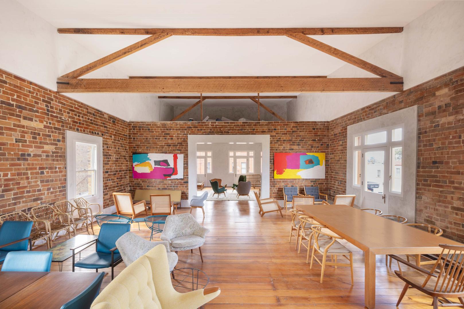 - High ceilings, exposed timber roof trusses