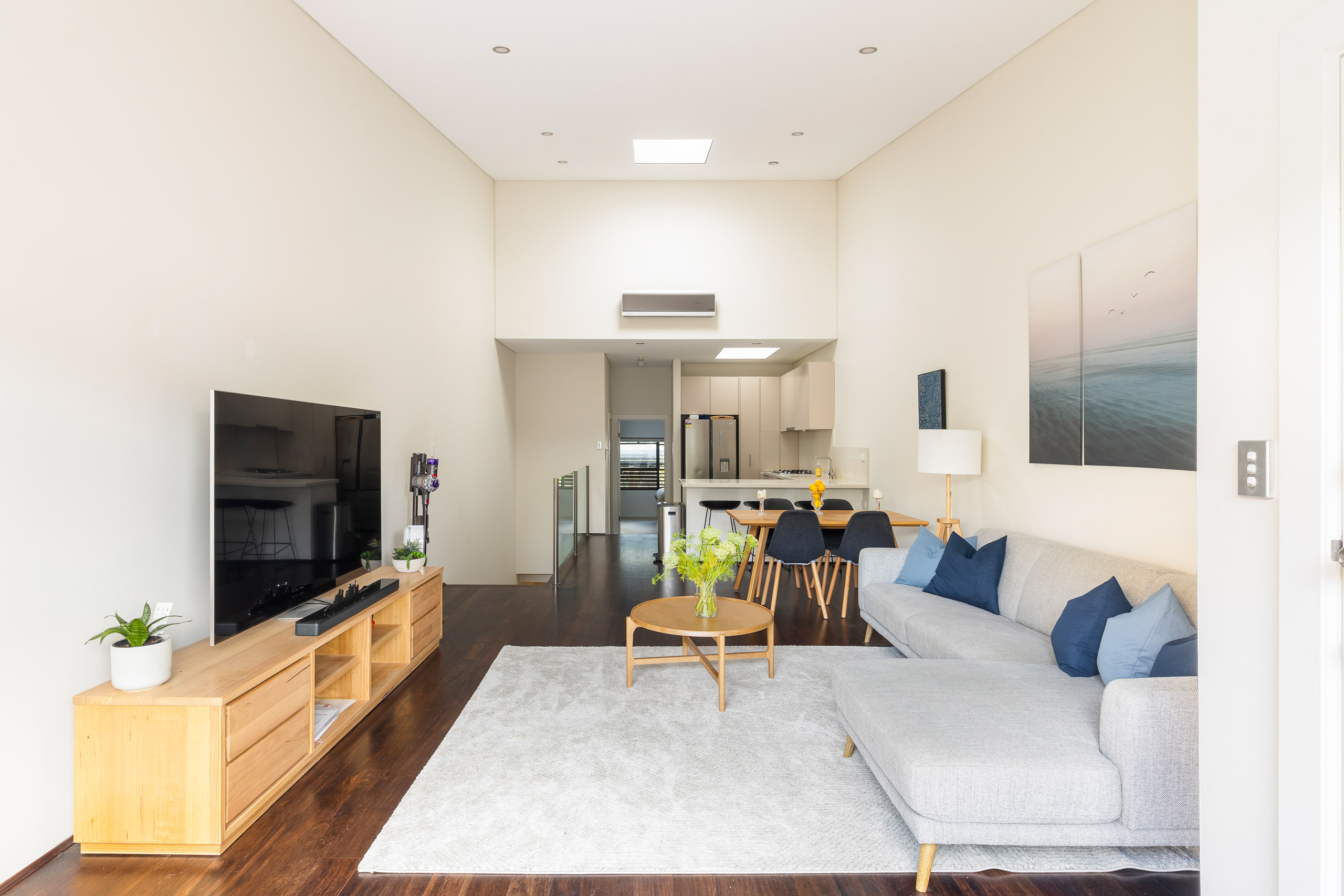 - North-facing living and dining spaces