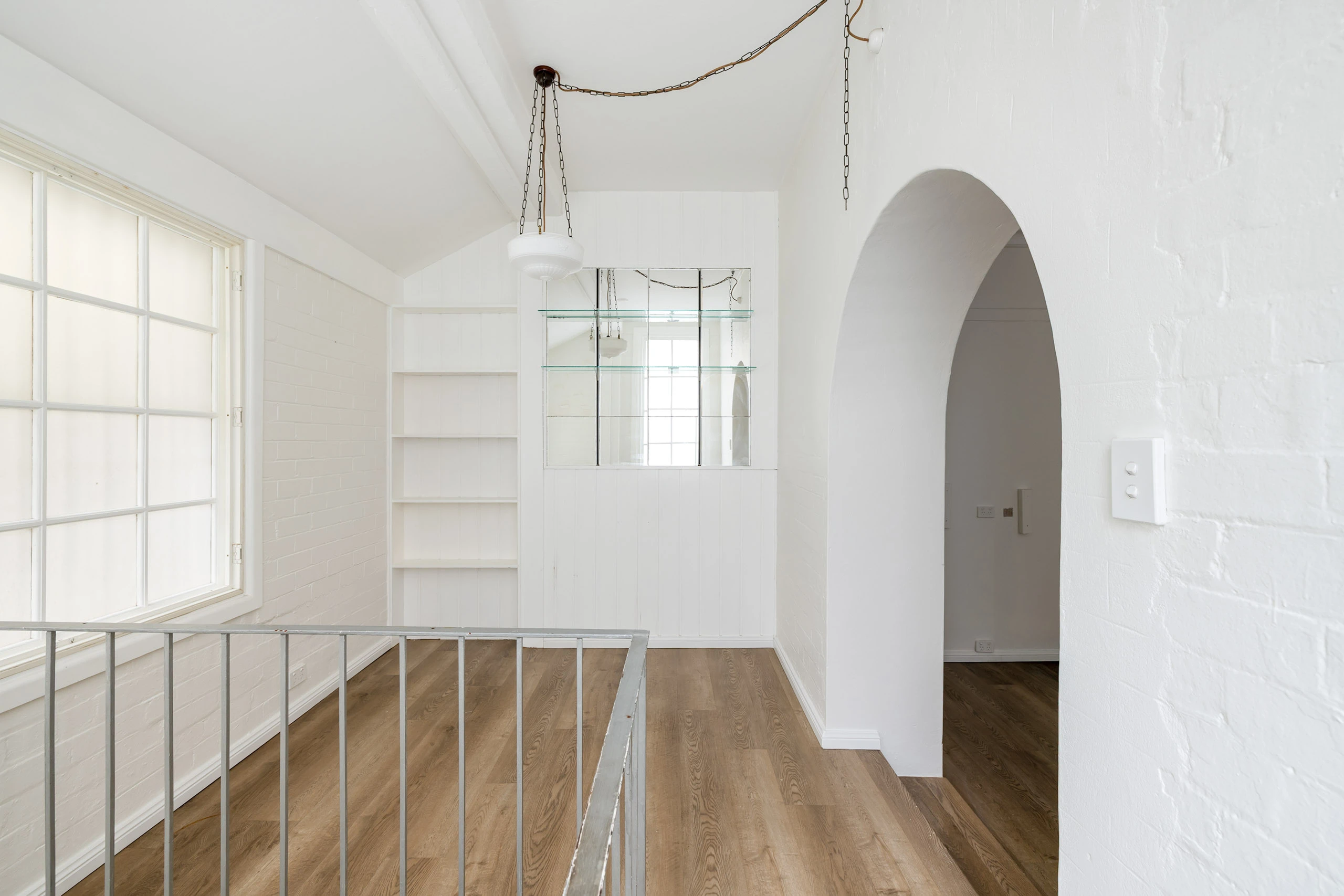 - Two large beds, one with walk-in robe