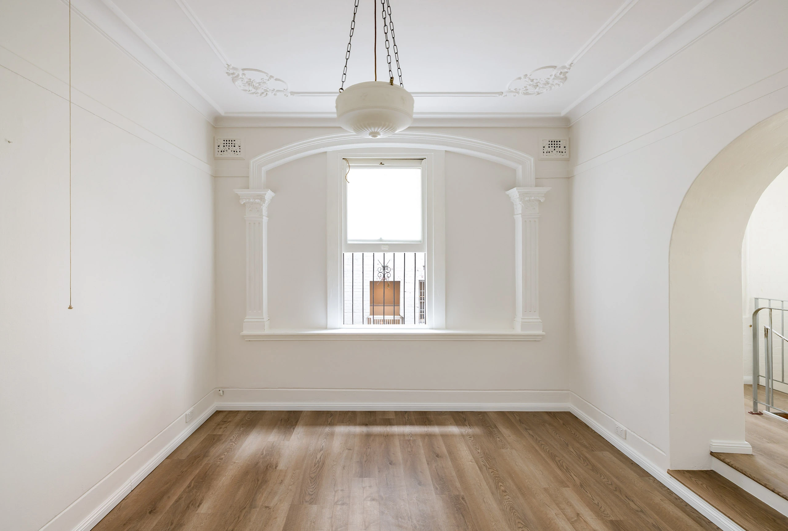 - Elegant living with ornate archway