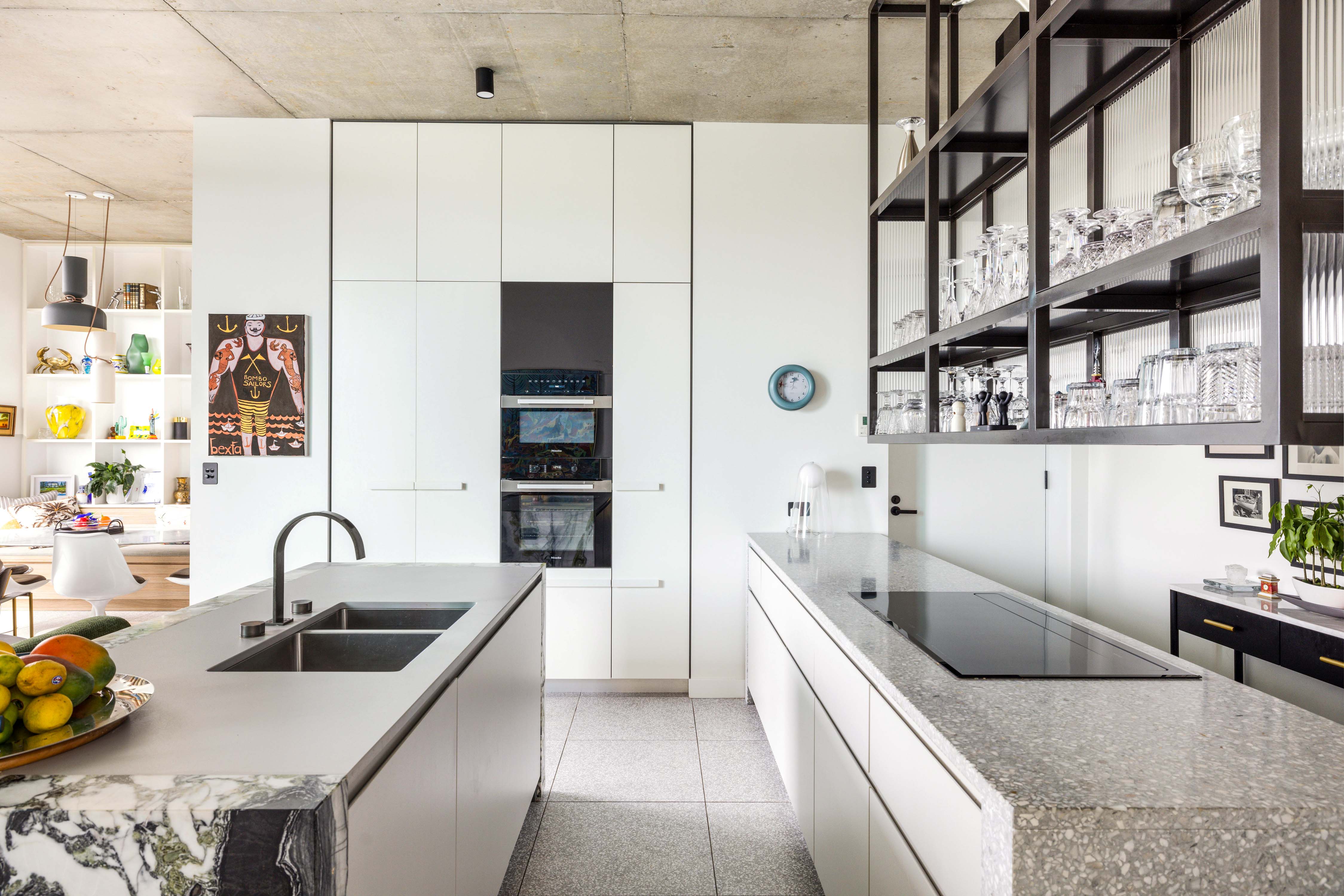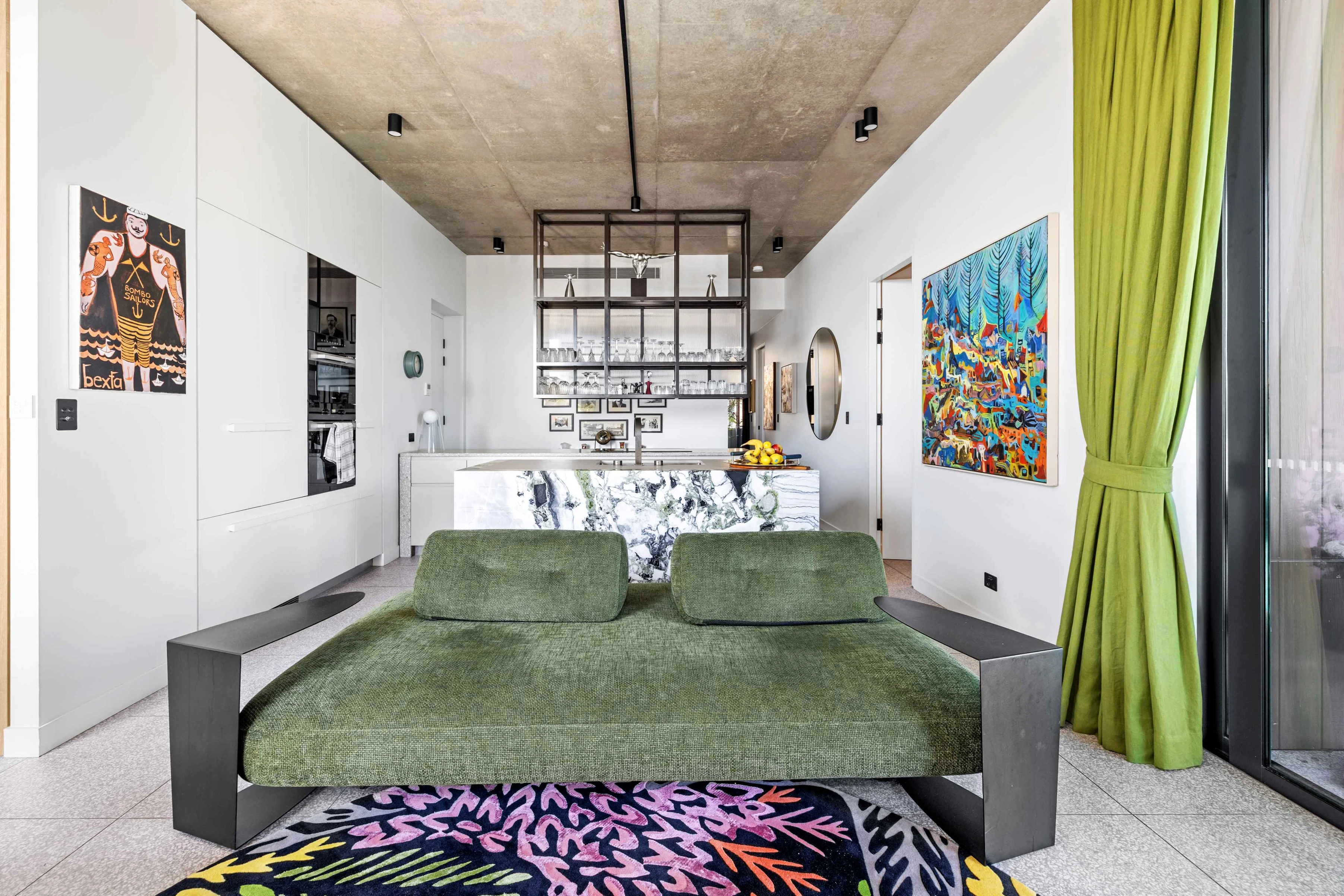 - Green-vein marble kitchen, premium fitout