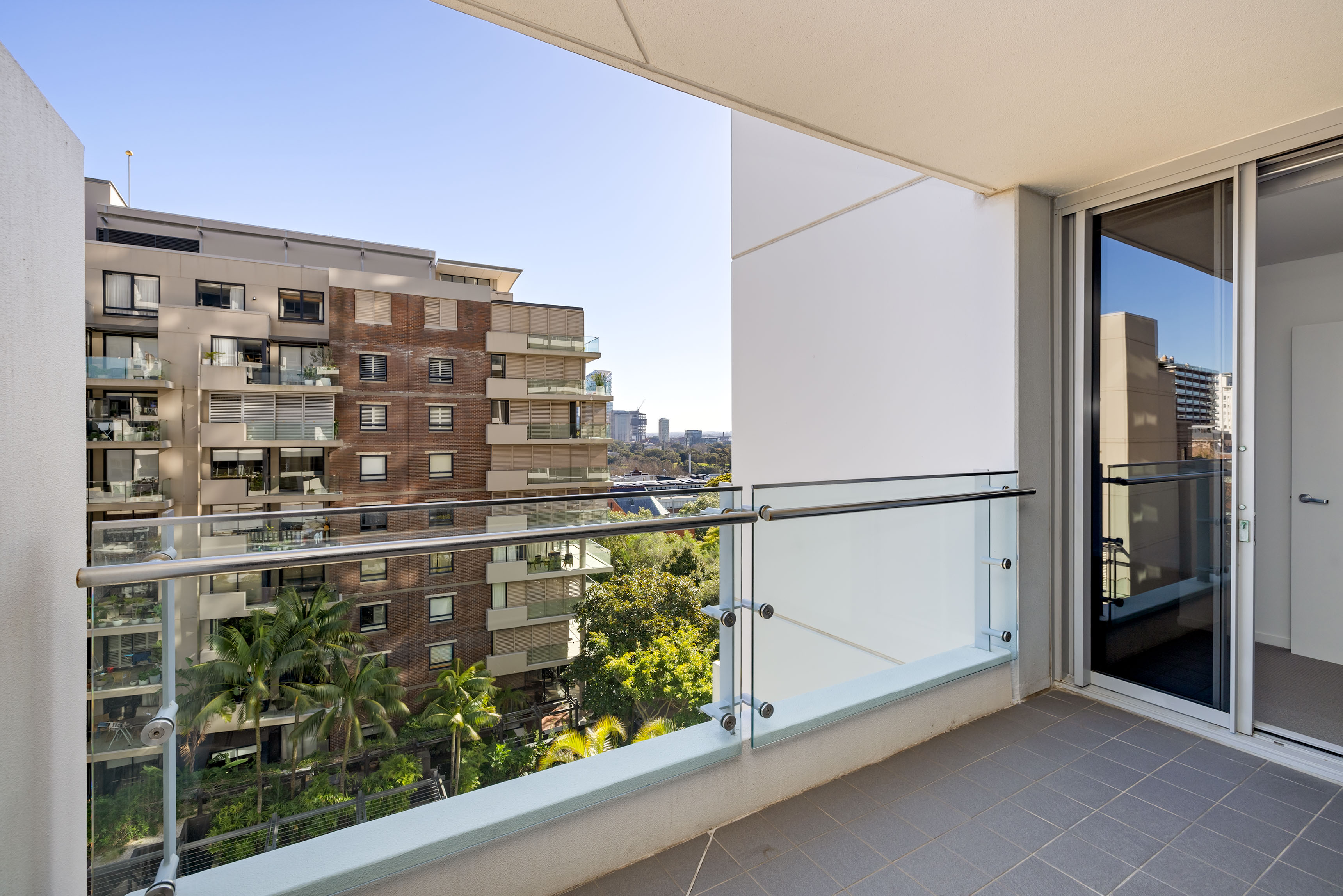 - Bedroom with built-in, city skyline glimpses