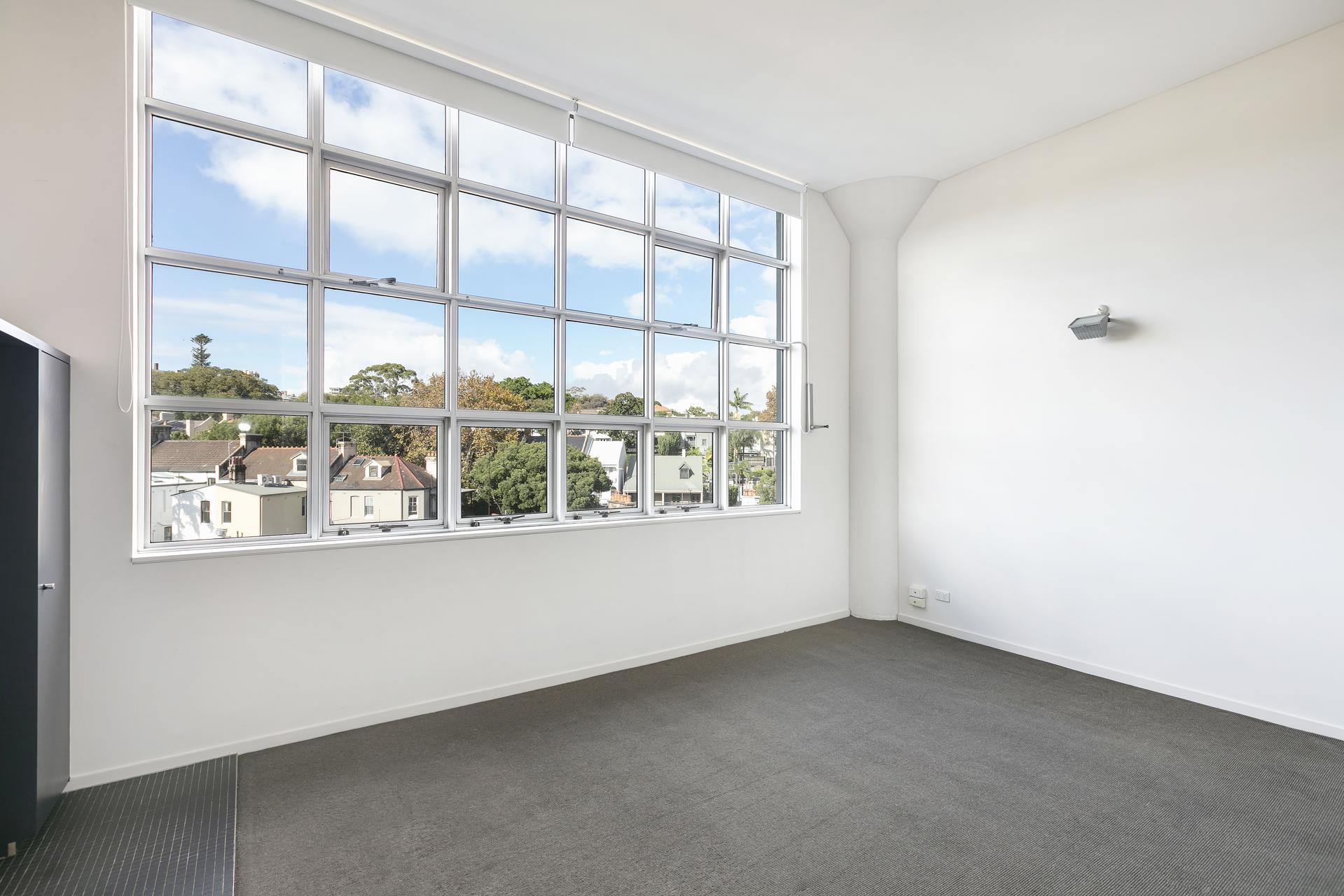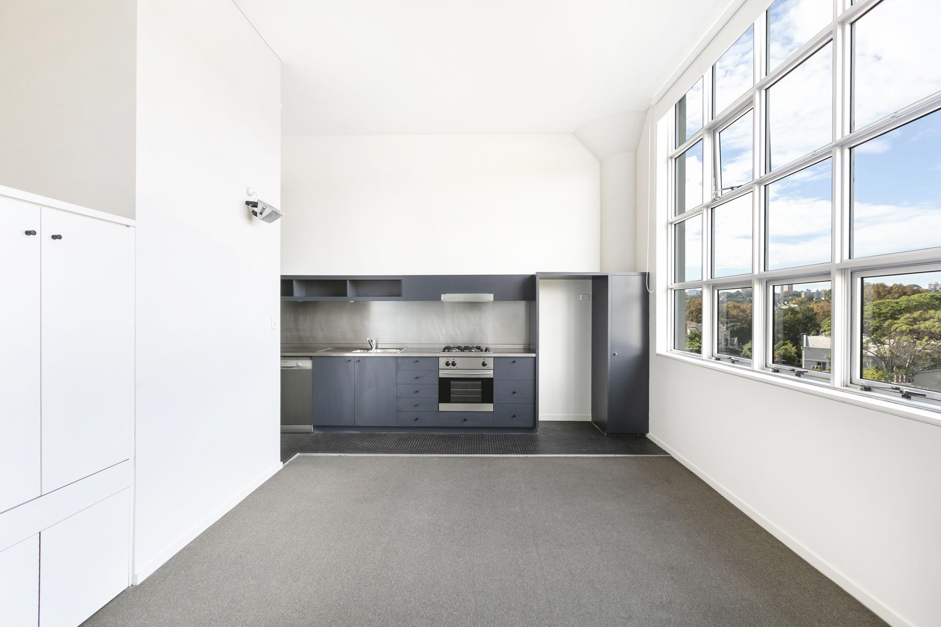In sought-after warehouse conversion the ‘Block’, this one-bedroom apartment makes a chic inner-city home, with elevated leafy outlooks from the huge windows plus an elegant mix of design businesses, galleries and cafés at your door.
