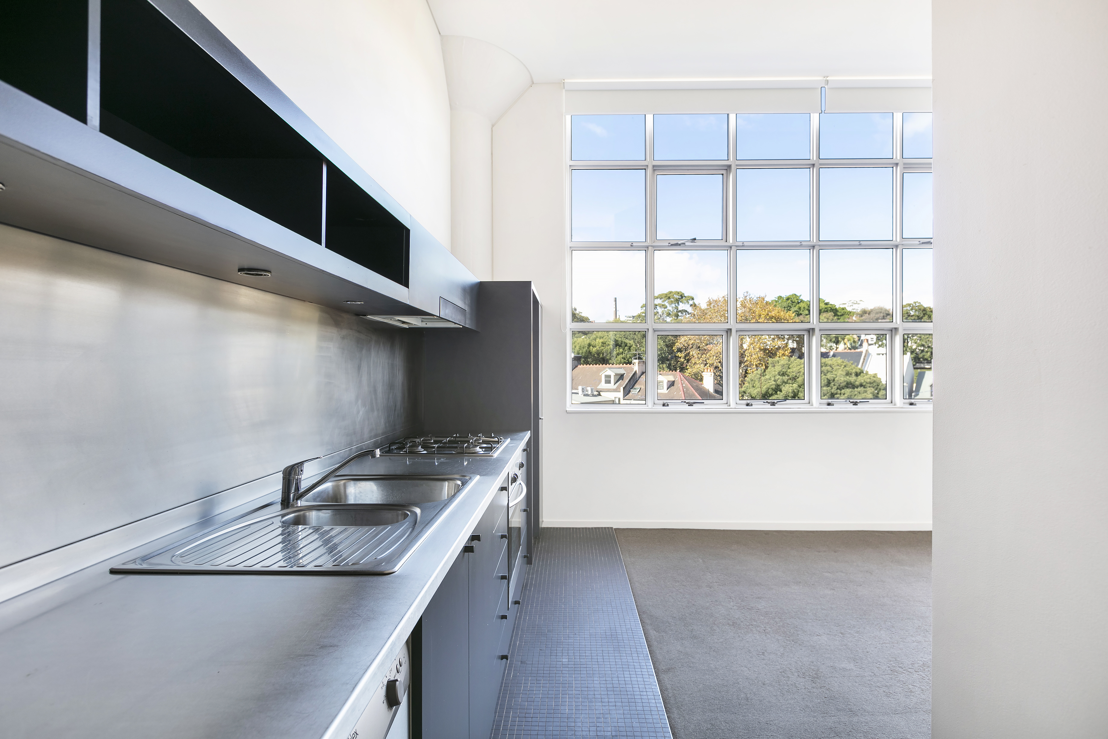 In sought-after warehouse conversion the ‘Block’, this one-bedroom apartment makes a chic inner-city home, with elevated leafy outlooks from the huge windows plus an elegant mix of design businesses, galleries and cafés at your door.