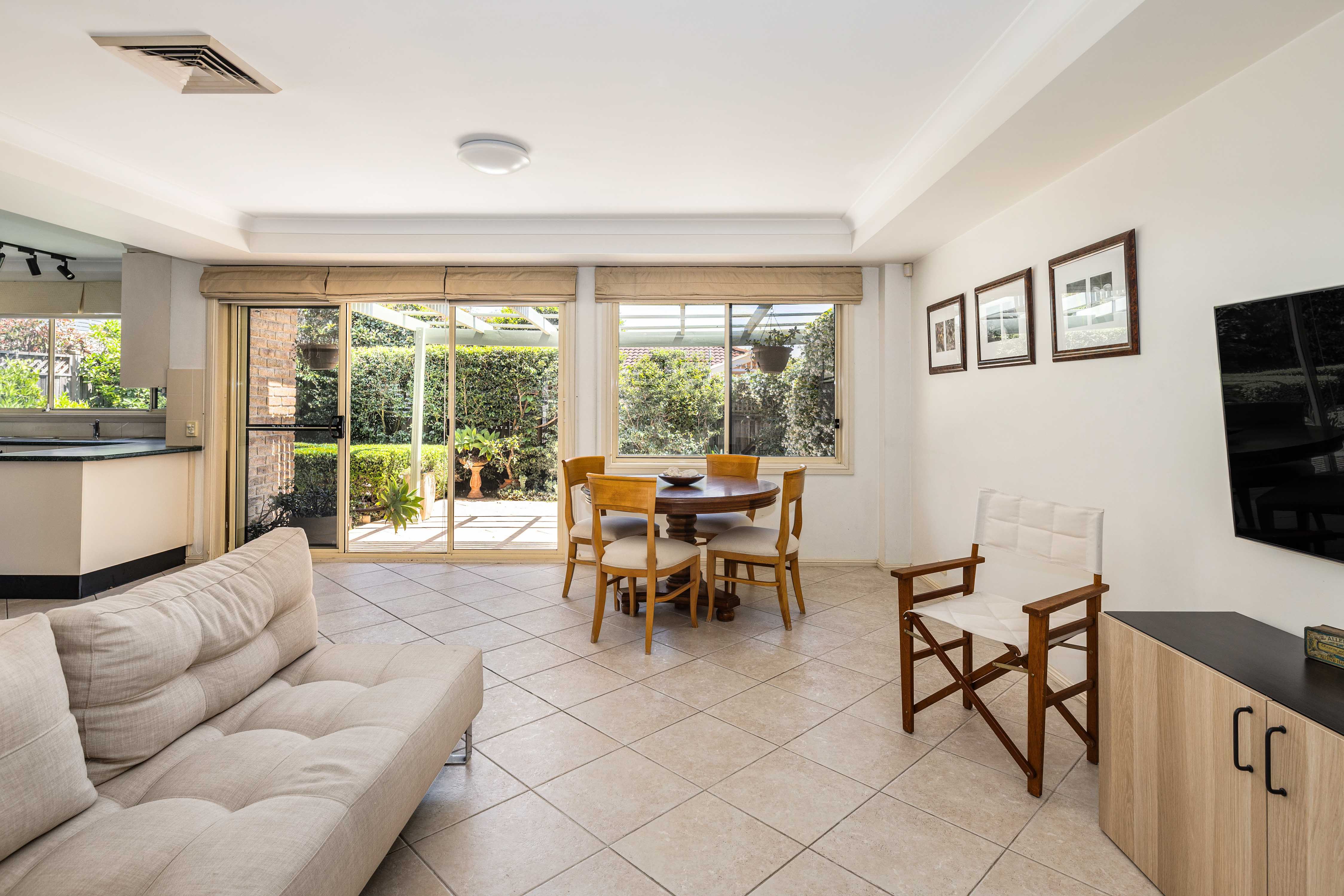 - Tiled open living flows to patio & grass