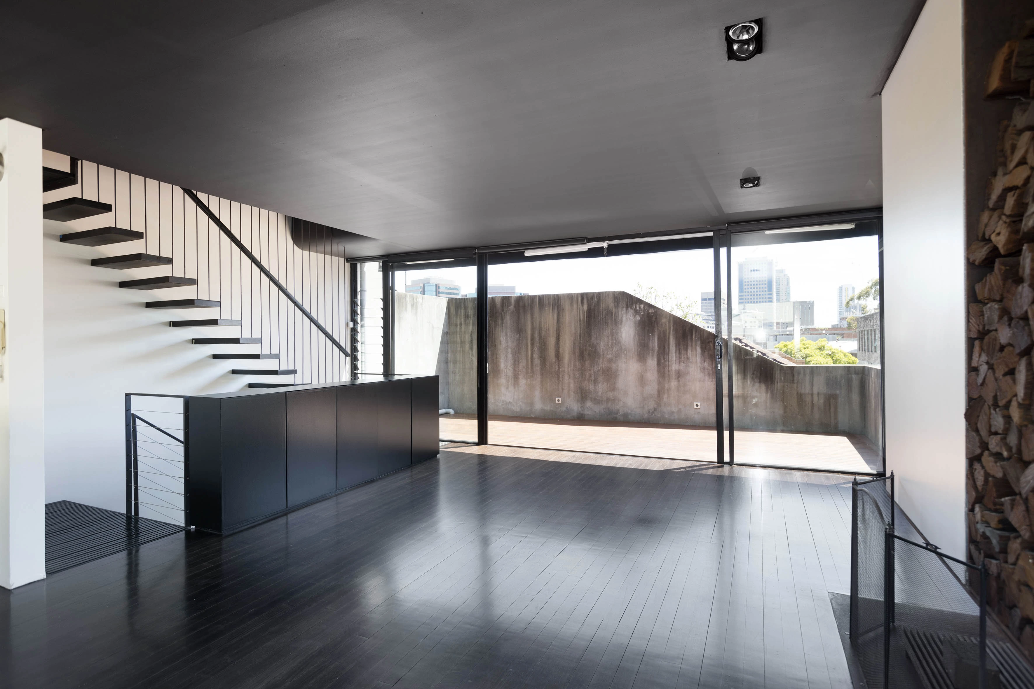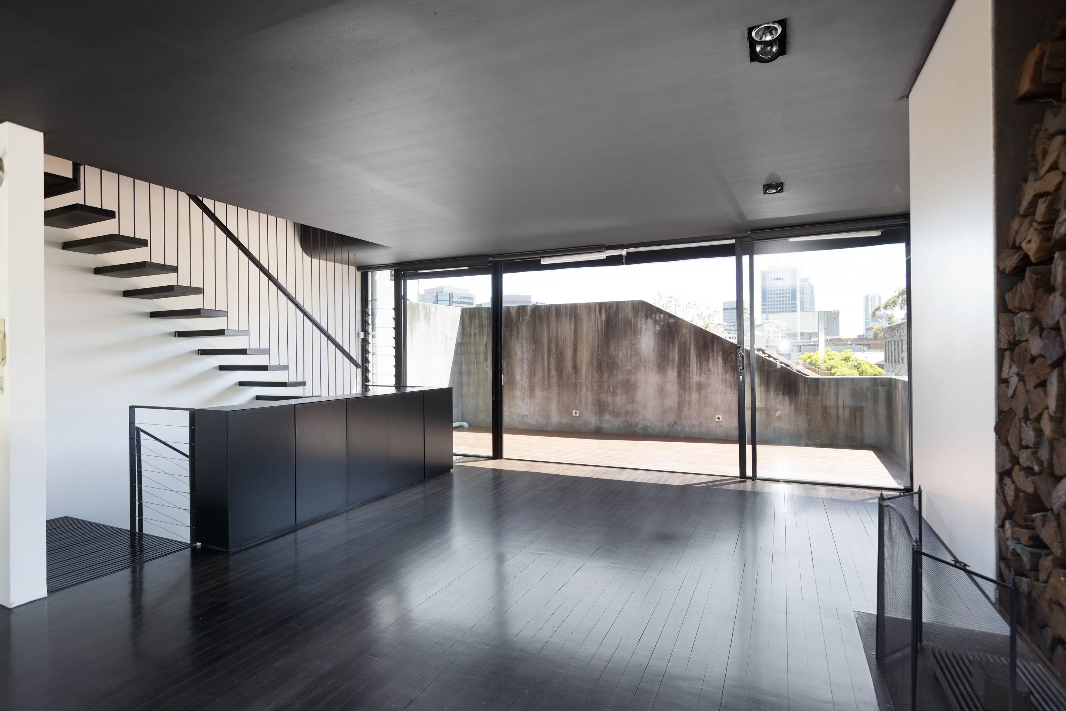 - Polished concrete feat + timber floors