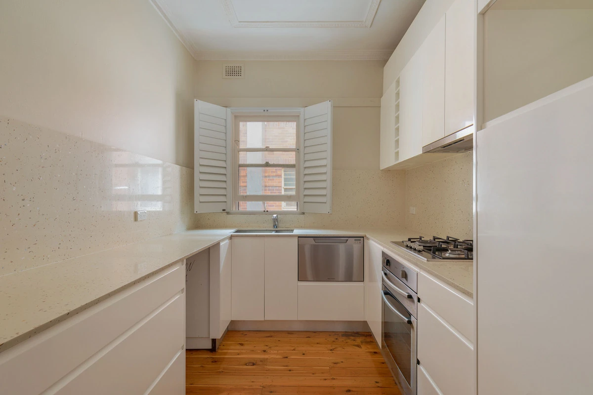 - Gas kitchen, stone benches, dishwasher