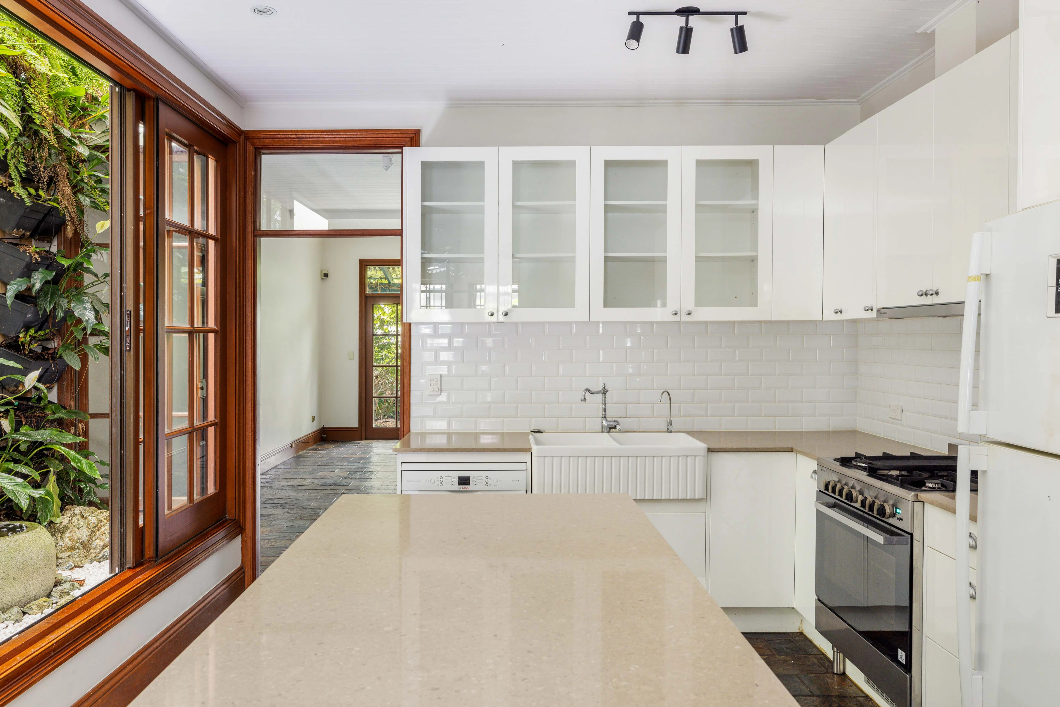 - French provincial kitchen, atrium views