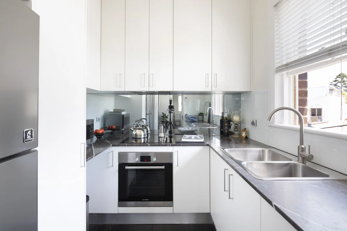- Marble benchtops, Bosch appliances