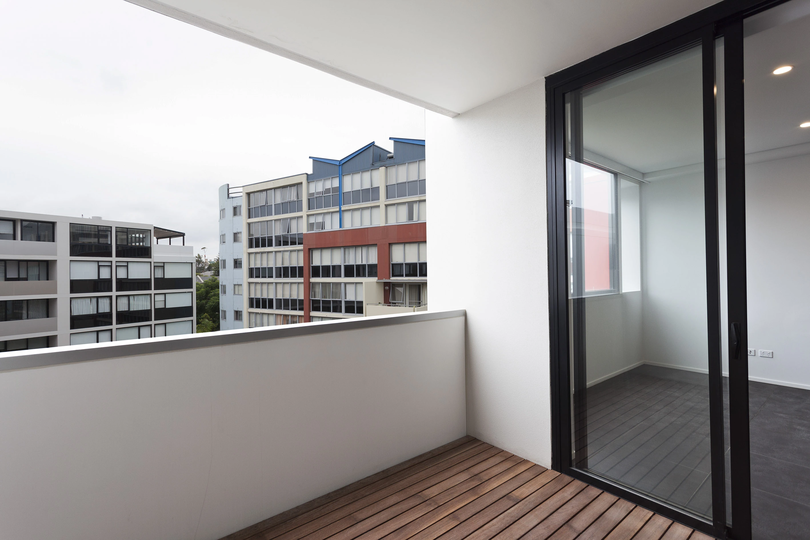 - Timber deck enclosed balcony area