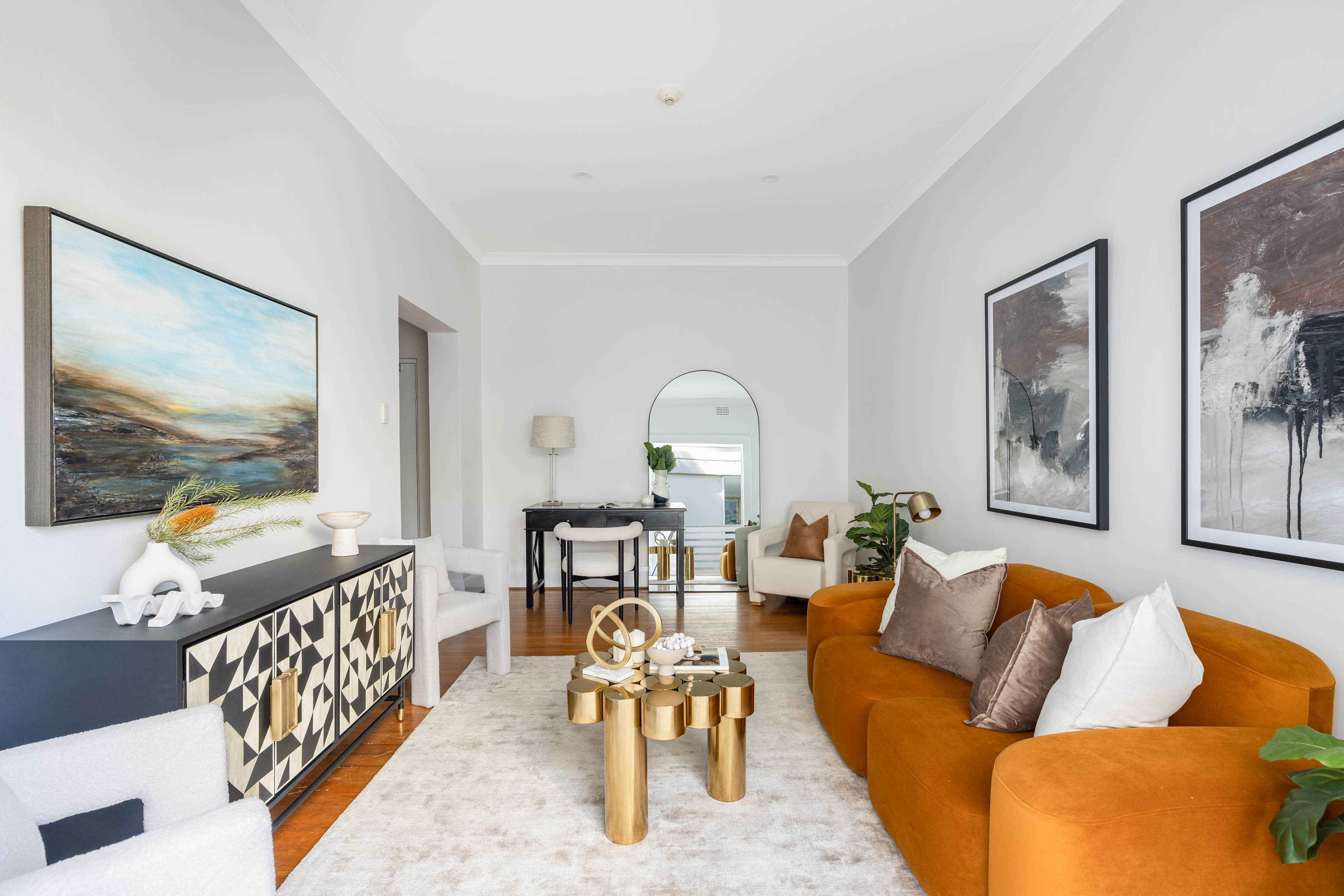 - High ceilings, polished floors, period detail