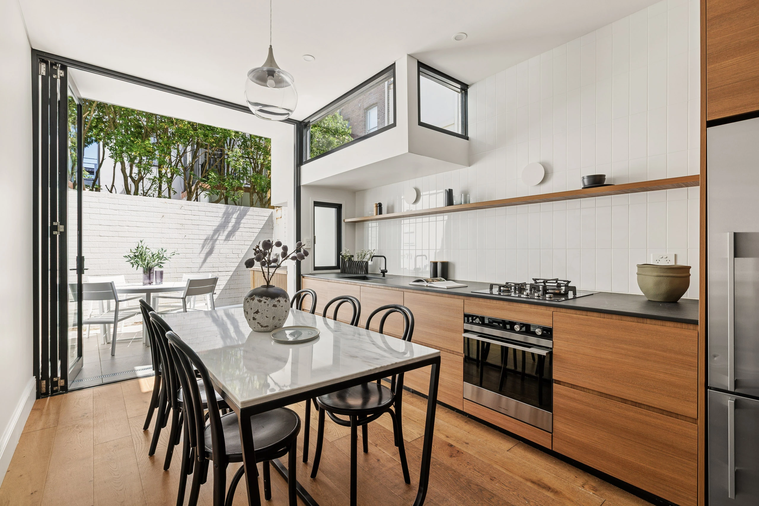 Peacefully tucked away in a tree-lined pocket between Bourke and Crown Streets, this renovated terrace offers 3 levels of naturally bright space, with quality appointments and green views. With modern lines and thoughtful details, wall-to-wall glass doors connect the courtyard and alfresco entertaining space. Moments to cafes and restaurants, parks, schools and city transport, it suits city professionals or a young family in a quiet, convenient location.