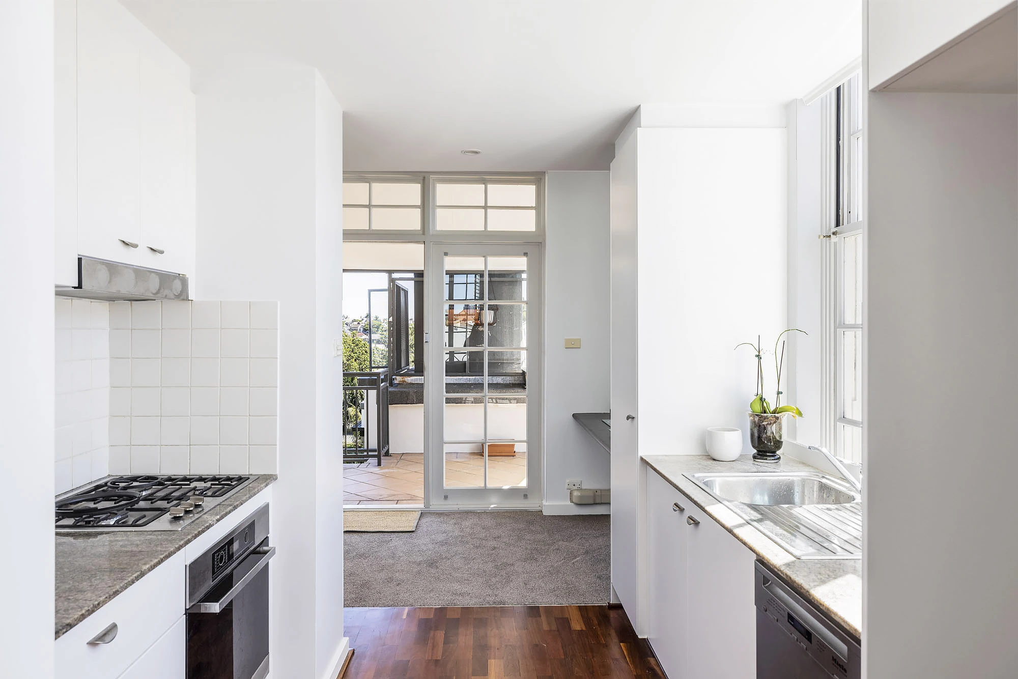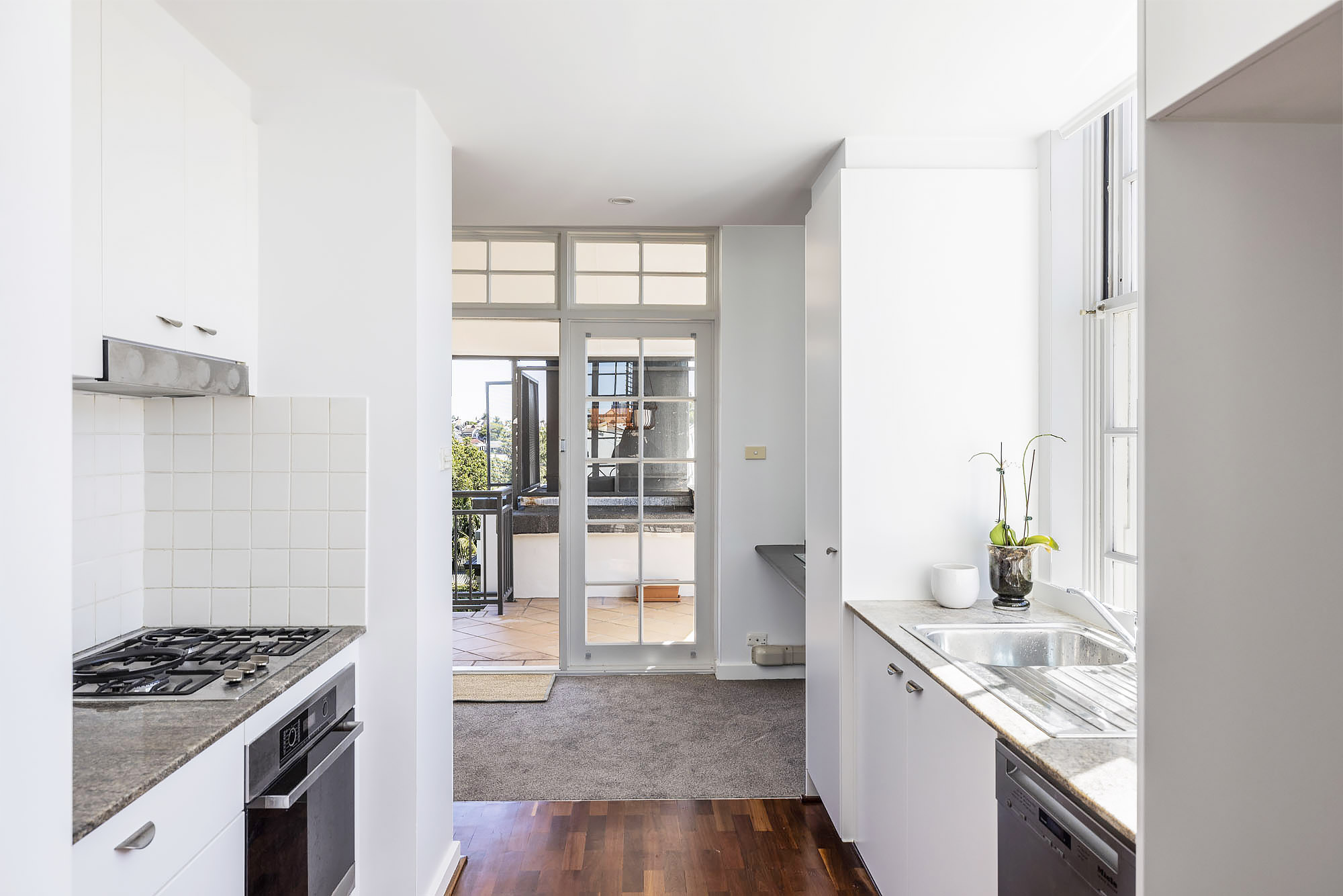 - Kitchen w/ Miele appliances, stone benches