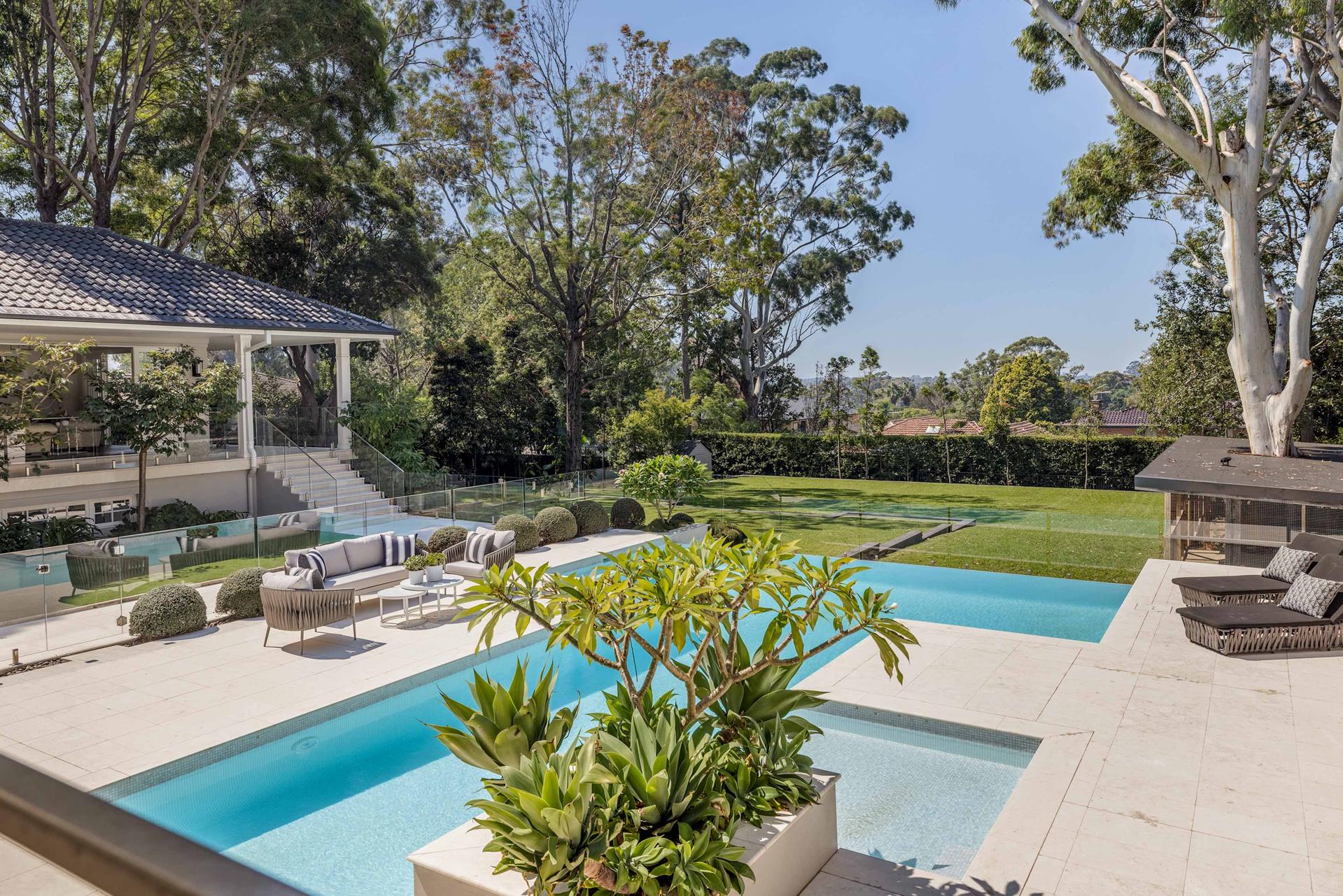 A sprawling contemporary build that pays homage to sophisticated Hamptons style, this double brick residence is an entertainer’s home that transcends time and generations, offering wide appeal with its retreat-like ambiance and sense of seclusion. Designed to be functional as a single house or two separate residences, it has the flexibility to accommodate extended families under one roof, or provide space for visitors and more. Wrapped in private gardens and spilling onto alfresco terraces, level lawns, and poolside sundecks, it’s the type of statement home that would welcome hundreds of guests with ease, set in one of the area’s level streets, with an imposing 35m frontage and a 2761sqm land parcel.
